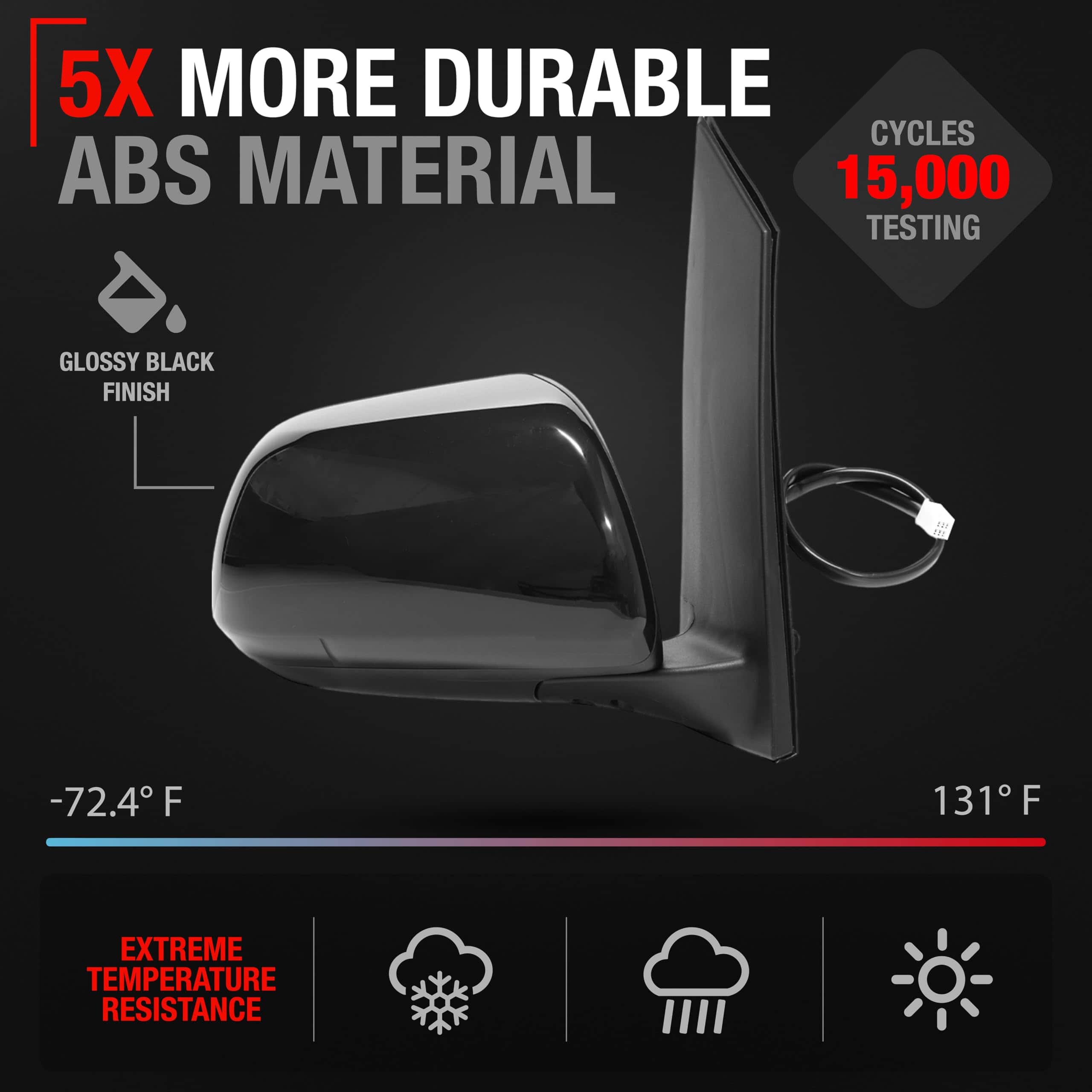 Espejo de reemplazo del lado del pasajero – -Negro