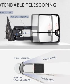 Color: Azul Pintado Ajustes: Chevy Silverado 1500 2014-2018, 2500 HD 2015-2019, 3500 HD 2015-2019; GMC Sierra 1500 2014-2018, 2500 HD 2015-2019, 3500 HD 2015-2019; Chevy Silverado 1500 Legecy 2019, GMC Sierra 1500 Limited 2019. Calidad excepcional: Construido según estrictos estándares de control de calidad. Plástico ABS ultra resistente de la industria, 100% impermeable y resistente a golpes. Vidrio reflectante de calidad perfecta asegura un horizonte claro. Mejora drásticamente el estilo y la apariencia. Funciones: Luces únicas de señal de giro LED dinámicas y luz de marcha. Espejos operados con energía. Espejo plano calentado, luz de respaldo, vidrio plano y convexo. Plegado manual y extensión Sin plegado eléctrico. Nota: Estos espejos solo funcionarán correctamente en vehículos con estas opciones exactas. Si su vehículo no tiene las opciones enumeradas, es posible que estos espejos no funcionen correctamente. ¡Por favor, verifíquelo antes de realizar el pedido para evitar inconvenientes adicionales. Gracias por su ayuda.
