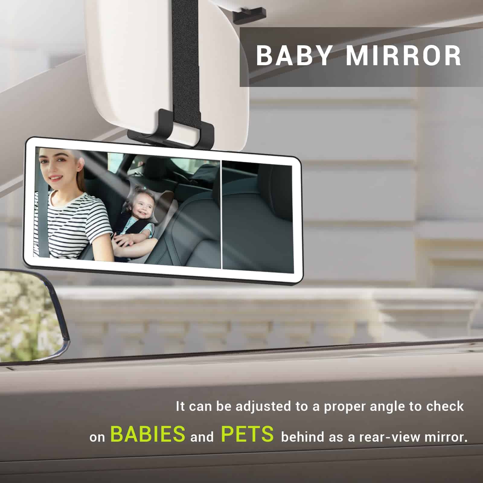 5. Espejo de coche para bebé con visión trasera. Puedes controlar al bebé y a la mascota en la parte trasera del lado del pasajero. El espejo de maquillaje para coche con triple aumento ayuda a ver claramente los puntos ciegos visuales. El espejo de visera se puede plegar y no interferirá con tu vista.