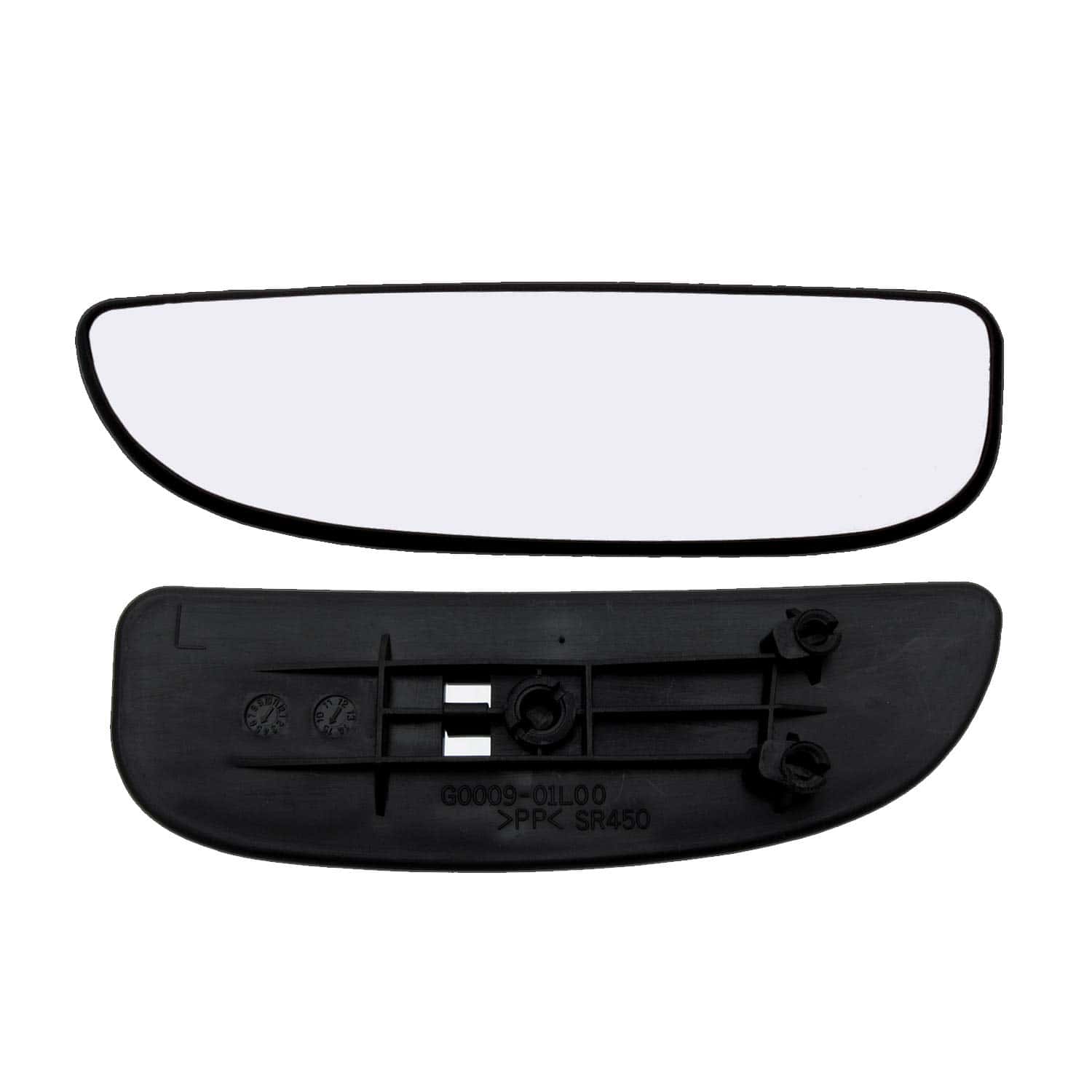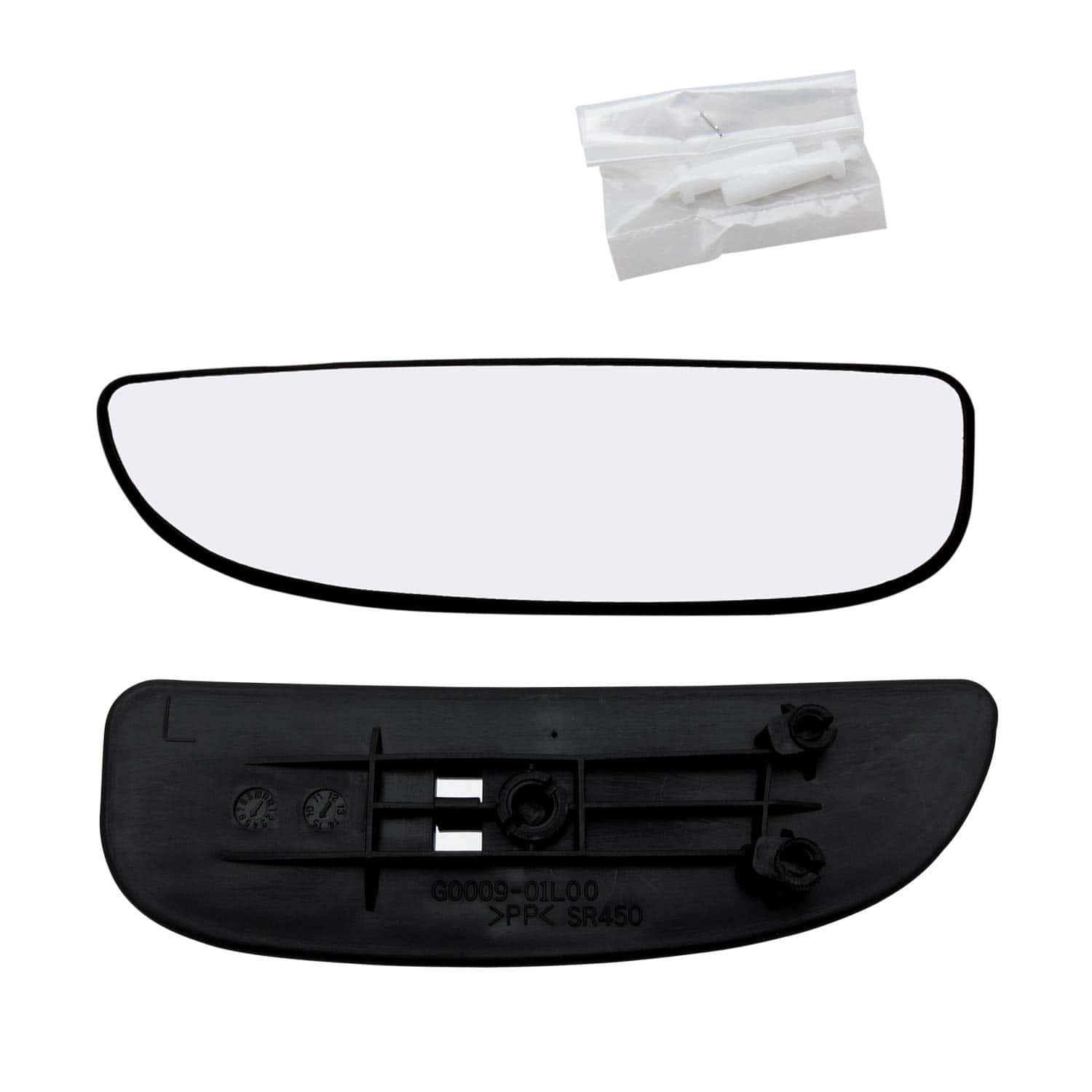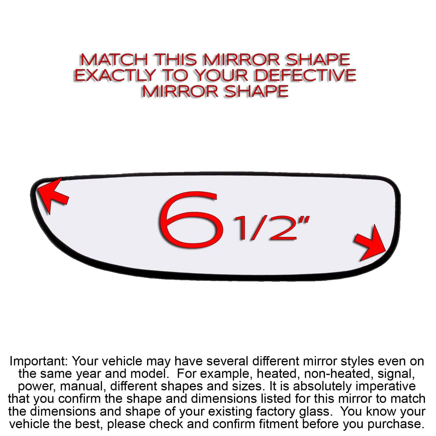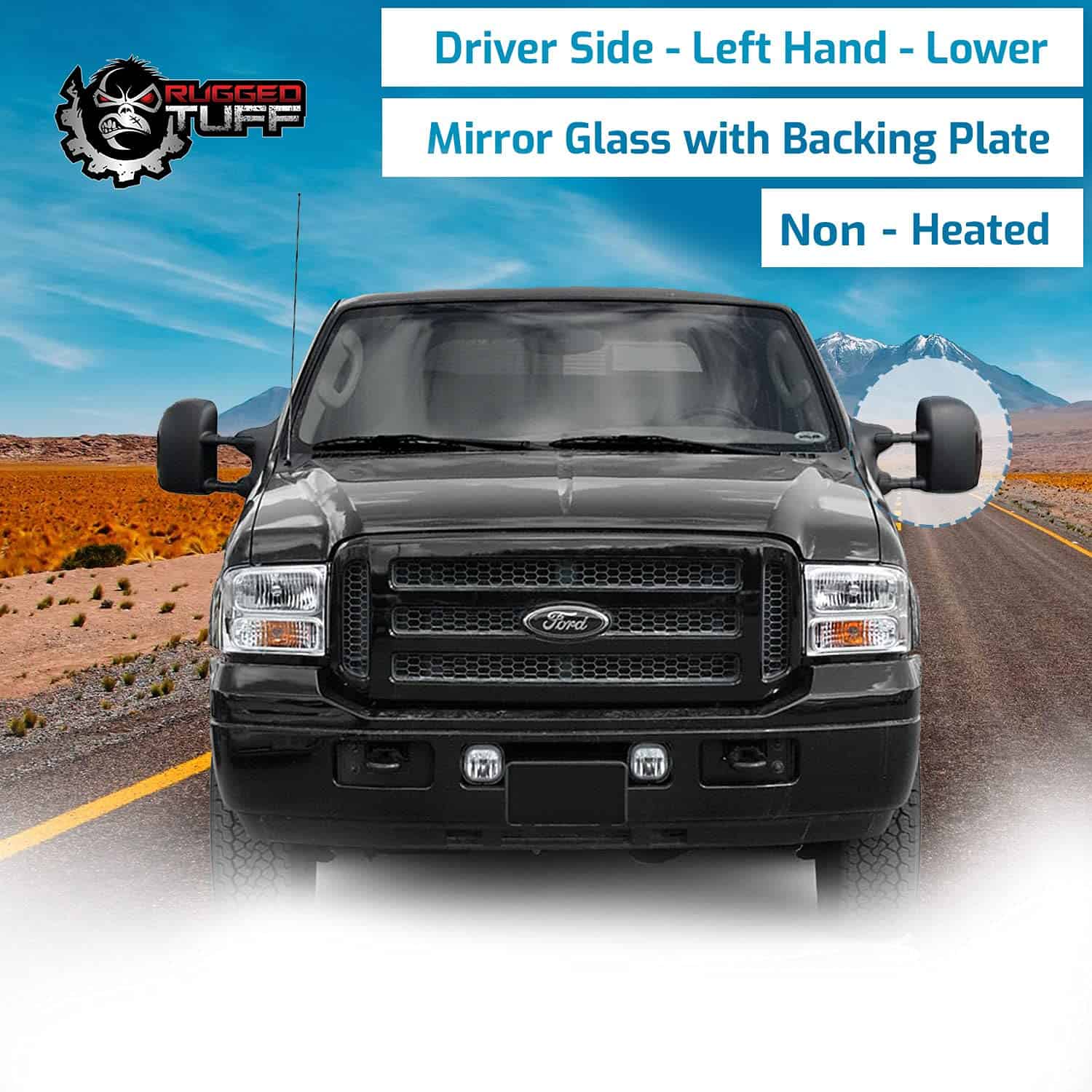 Reemplace el espejo lateral del lado del conductor de su vehículo Ford con esta ensamblaje de vidrio de espejo con placa de respaldo compatible. Este espejo es adecuado para los modelos Ford E150, E250, E350, E450, F250, F350, F450, F550, Excursion de los años mencionados. La parte inferior de la lente de remolque es ideal para remolcar y proporciona la visión que necesita al maniobrar su vehículo. El espejo es no térmico y viene con un clip de montaje trasero para una instalación segura. Asegúrese de verificar y emparejar las medidas, forma y atributos para garantizar un ajuste adecuado. Tenga en cuenta que este espejo de repuesto no tiene atenuación automática. Realice su pedido antes de las 2 p. m. PST para un envío el mismo día.