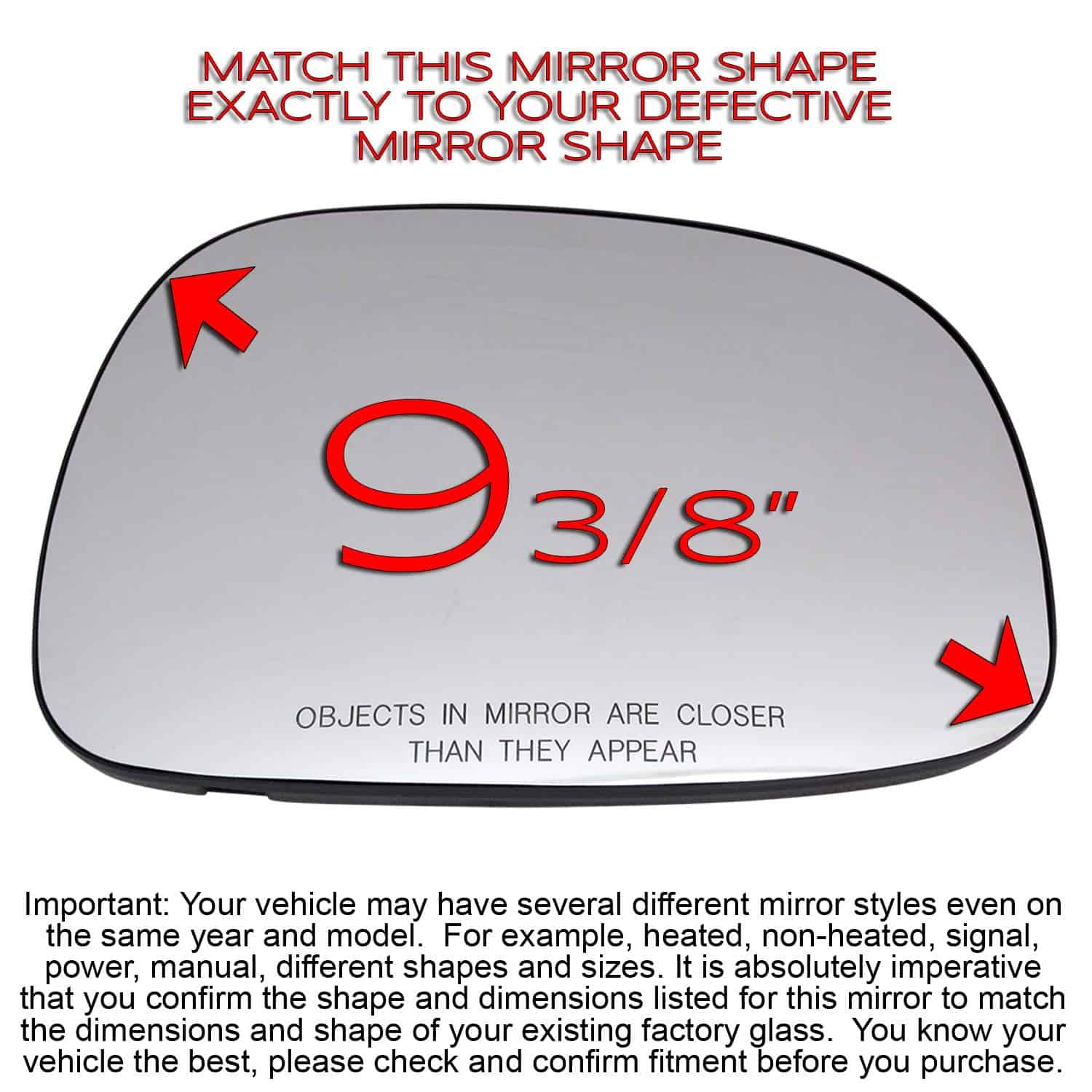 Espejo lateral del pasajero con ensamblaje de vidrio con respaldo de plástico calentado, compatible con Buick Rendezvous 2002-2007. Este espejo se ajusta a los modelos mencionados y ofrece una calidad de repuesto confiable. El lado derecho del pasajero está diseñado con un clip de montaje trasero para una fácil instalación. El equipo de calentamiento por deshielo proporciona visibilidad clara en condiciones climáticas adversas. Las medidas del espejo son diagonales 9-3/8 pulgadas, longitud 9-1/8 pulgadas, altura 6-5/8 pulgadas. Además, el espejo cuenta con el número de parte adicional 80258 88891860. Asegúrese de verificar y hacer coincidir la forma, las medidas y los atributos para garantizar un ajuste adecuado. Este espejo no es auto-difuminante y es un repuesto de alta calidad para su Buick Rendezvous.
