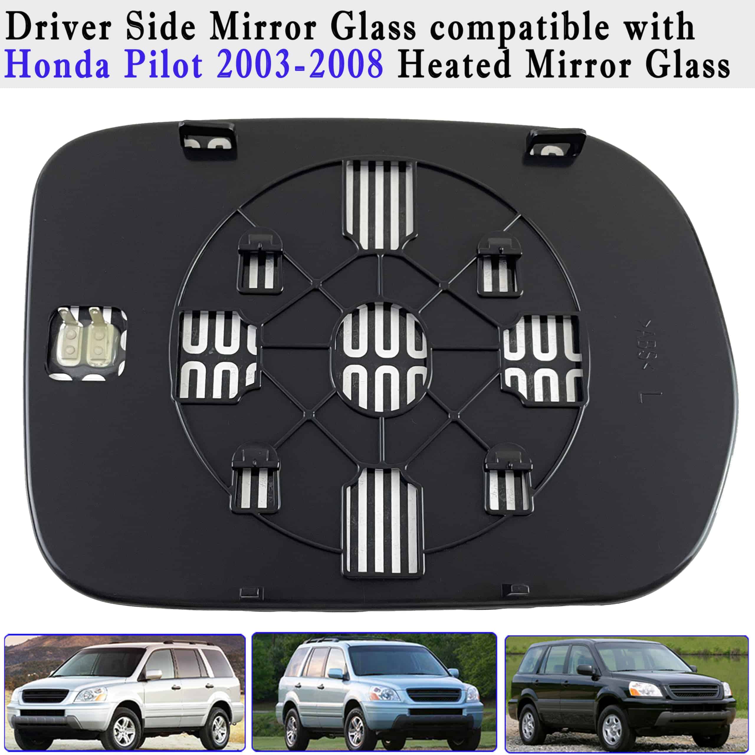 1. Espejo del lado del conductor compatible con Honda Pilot 2008 2007 2006 2005 2004 2003. 2. Reemplazo directo del espejo calentado del lado del conductor de 2003-2008 Pilot: Utilizado para el espejo del lado izquierdo de Pilot 2008 2007 2006 2005 2004 2003, fácil de reemplazar los espejos agrietados y dañados del lado izquierdo. 3. Espejo derecho del lado de Pilot 2003-2008 con construcción duradera: Hecho de placa trasera de ABS, calidad confiable, 100% probado en fábrica. Rendimiento superior y estable. 4. Reemplazo del espejo del lado izquierdo de Pilot 2008: Con función calefacción, manteniendo el hielo y la niebla fuera de los espejos laterales para permitir al conductor ver más fácilmente los vehículos y otros peligros detrás de él cuando las condiciones meteorológicas son malas. 5. Por favor, avísenos si estos espejos del lado del conductor de Pilot 2003 2004 2005 2006 2007 2008 tienen problemas de calidad.