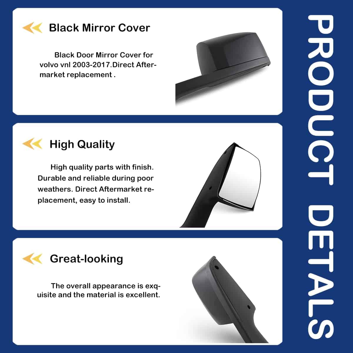 2. Nuestros espejos de capó para volvo vnl están hechos de material ABS de alta calidad; resistente al calor, duradero y confiable durante condiciones climáticas adversas; impermeable y fácil de limpiar.