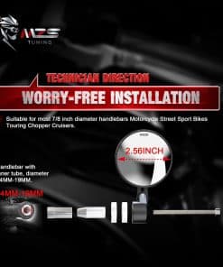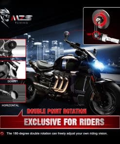 Adopta un moderno proceso integrado de aleación de aluminio CNC 6061 T6 que tiene una mayor resistencia a la tracción y límite elástico, y no se daña fácilmente incluso en caso de colisión. Tiene una buena resistencia a la corrosión y no es fácil de oxidar, asegurando una larga vida útil y un aspecto genial. Los espejos de motocicleta plegables para barra de 180 grados ajustable y diseño con lente de vidrio convexo HD proporcionan una ultra alta definición para eliminar los puntos ciegos, garantizando una conducción segura. El espejo de extremo de barra MZS 7/8 adopta un diseño único de expansor achaflanado. En comparación con el expansor en forma de cuerno tradicional, la parte extendida del adaptador achaflanado es más fácil de abrir y fijar dentro del manillar, lo que resuelve el problema de que el espejo de extremo de barra se afloje fácilmente durante la conducción. El diseño único de anti-atasco del acelerador forma la independencia absoluta de la posición de conexión entre el espejo y el acelerador. Después de la instalación, el acelerador conserva su elasticidad original, lo que te mantiene seguro y sin preocupaciones. Se ajusta a la mayoría de marcas de motocicletas, motos de calle, motos deportivas, scooters cruceros con manillares huecos estándar de 7/8 pulgadas de diámetro. (Antes de la instalación, mueve la carcasa plateada exterior del expansor hasta la parte superior y fíjala con una llave Allen, de lo contrario, la carcasa del expansor puede no abrirse)