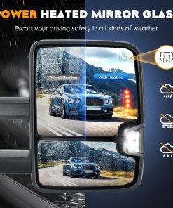Para Chevy Silverado Suburban Tahoe para GMC Sierra 1500 2500 HD Yukon, 3500 Classic 2007 con Power Heated Arrow Clearance Light Manual Folding Telescoping Pair. Estos espejos de remolque de ajuste son perfectos para Chevrolet 2003-2006 Silverado 1500 3500 / Silverado 2500 HD; 2007 Silverado 1500 Classic / 1500 HD Classic / 2500 HD Classic / 3500 Classic; 2005-07 Silverado 1500 HD; 2003-2004 Silverado 2500; 2003-06 Suburban 1500 2500 Tahoe. También son adecuados para GMC 2003-2006 Sierra 1500 3500; 2007 Sierra 1500 Classic; 2003 2005 2006 2007 Sierra 1500 HD; 2003-04 Sierra 2500; 2003-06 Sierra 2500 HD; 2007 Sierra 2500 HD Classic / 3500 Classic; 2003-06 Yukon / Yukon XL. Funciones incluyen: Espejos de remolque calentados eléctricamente, luz direccional, luz de giro trasera, luz de posición, plegado manual, telescópico manual, ajuste eléctrico del espejo grande y ajuste manual del espejo pequeño. Incluye un par de espejos de remolque para el lado del conductor y del pasajero. Fabricados con vidrio de alta calidad y material ABS para una visión clara en todo tipo de clima. Asegúrese de confirmar la compatibilidad de estos espejos de remolque con su vehículo antes de la compra.