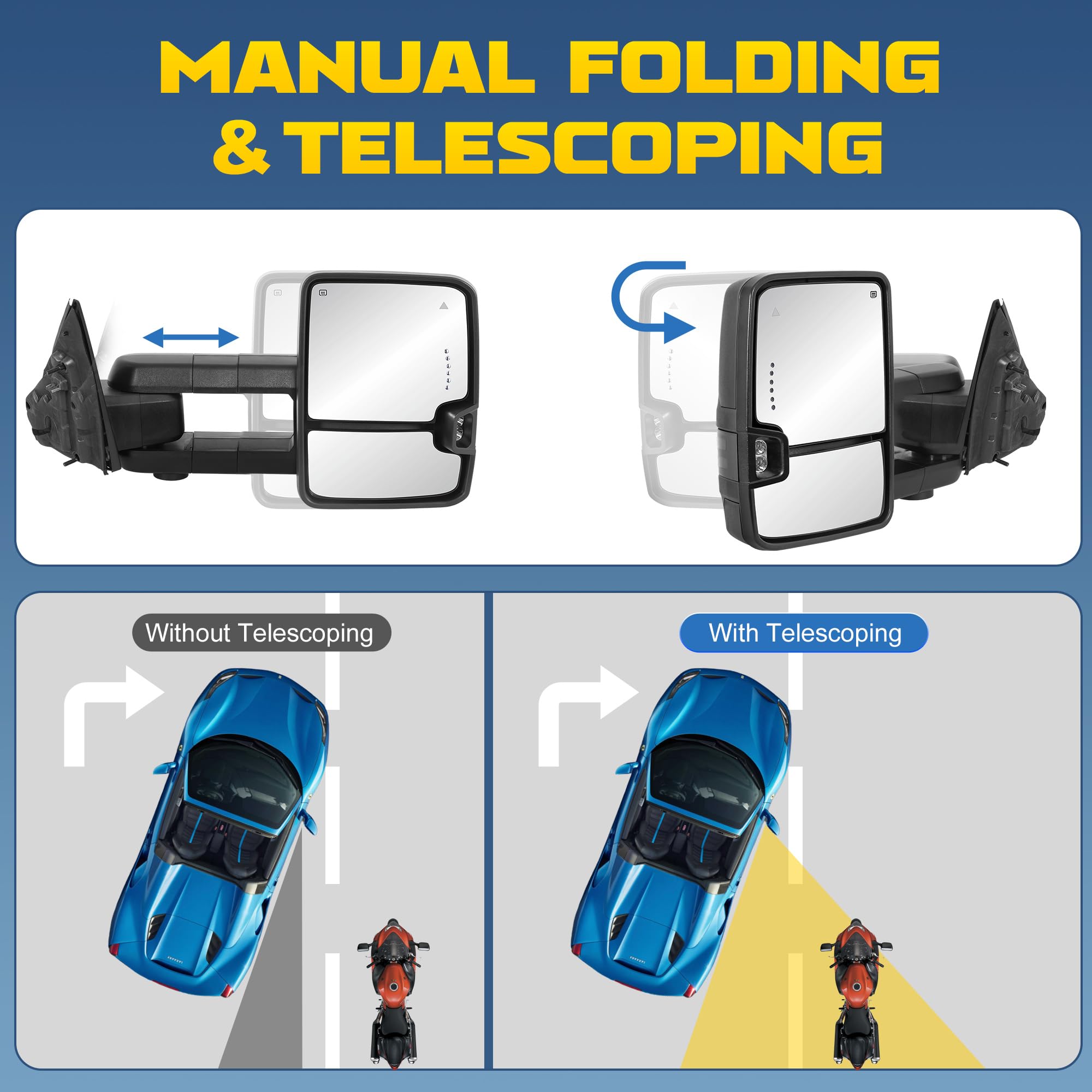 2. Paquete incluye: Un par de espejos de remolque (izquierdo y derecho). Fácil instalación, sin modificaciones (se recomienda una instalación profesional).