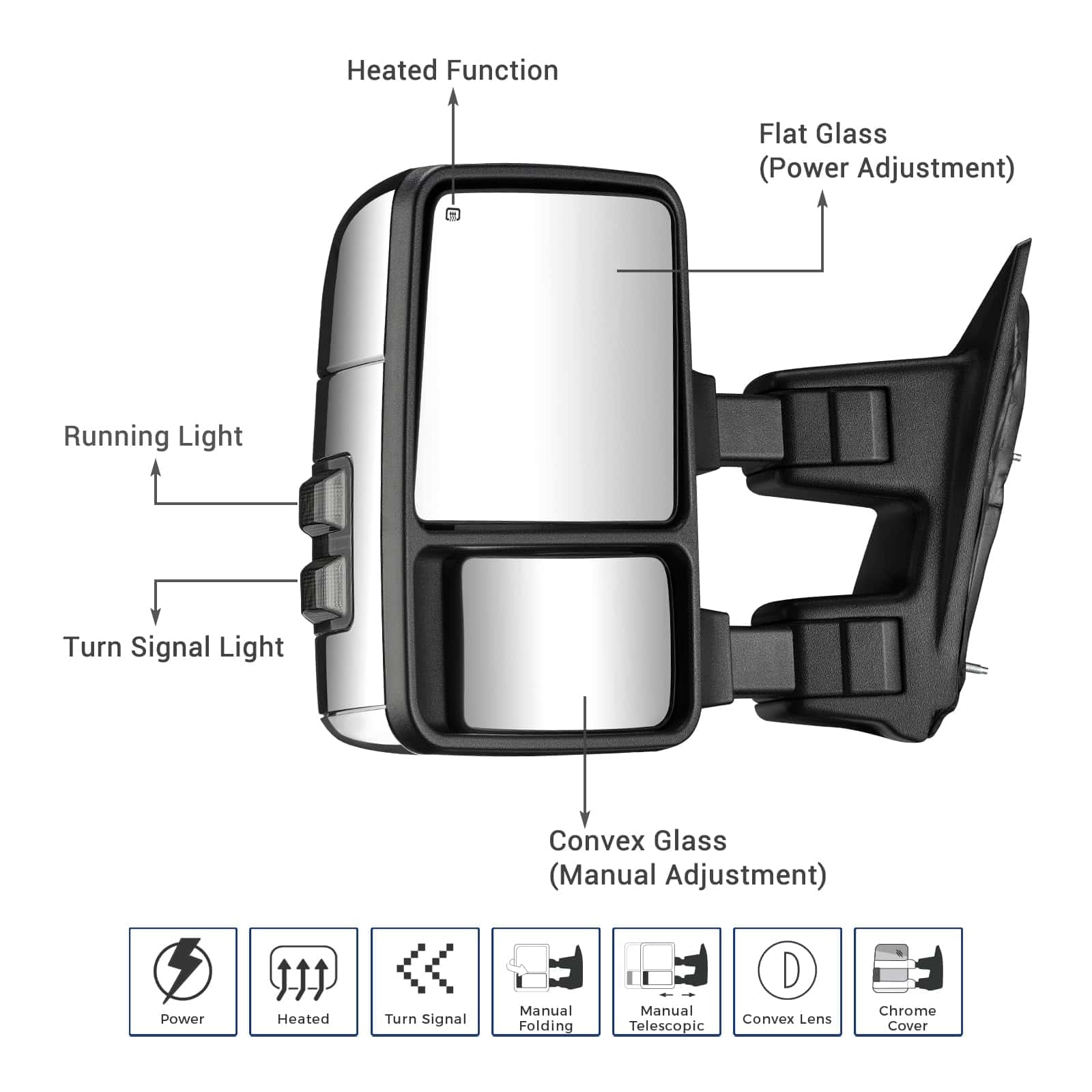 Espejos de Remolque Compatibles con Ford -Cromo