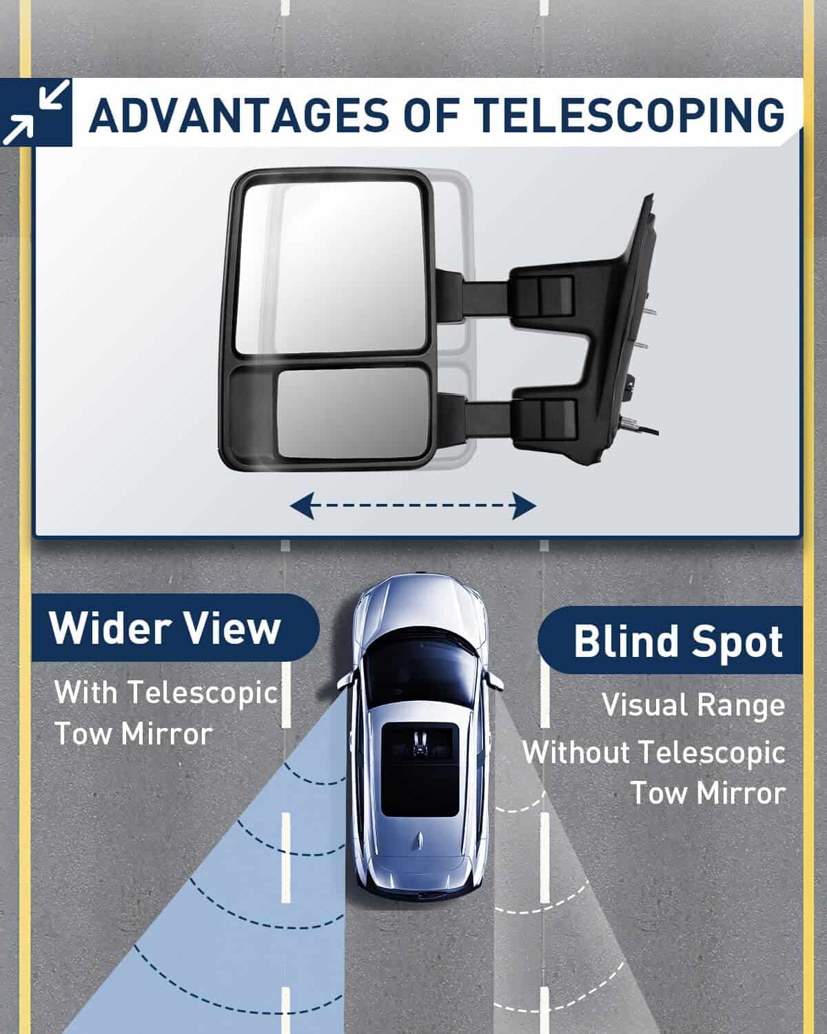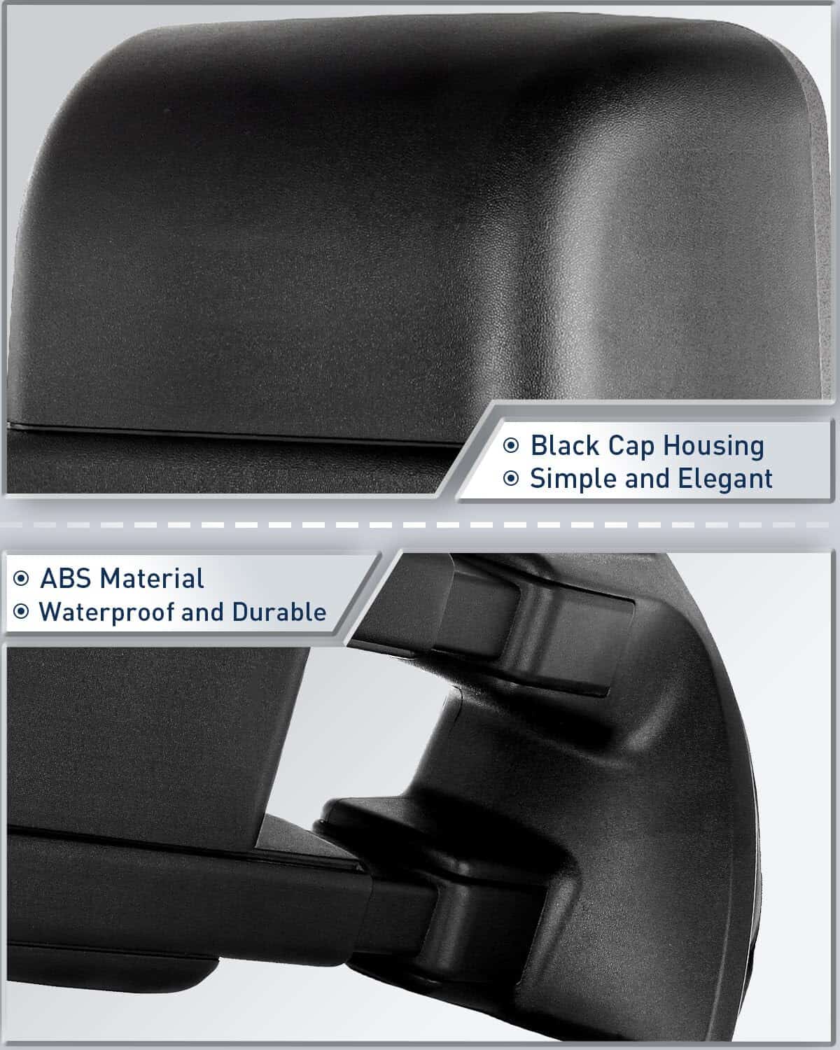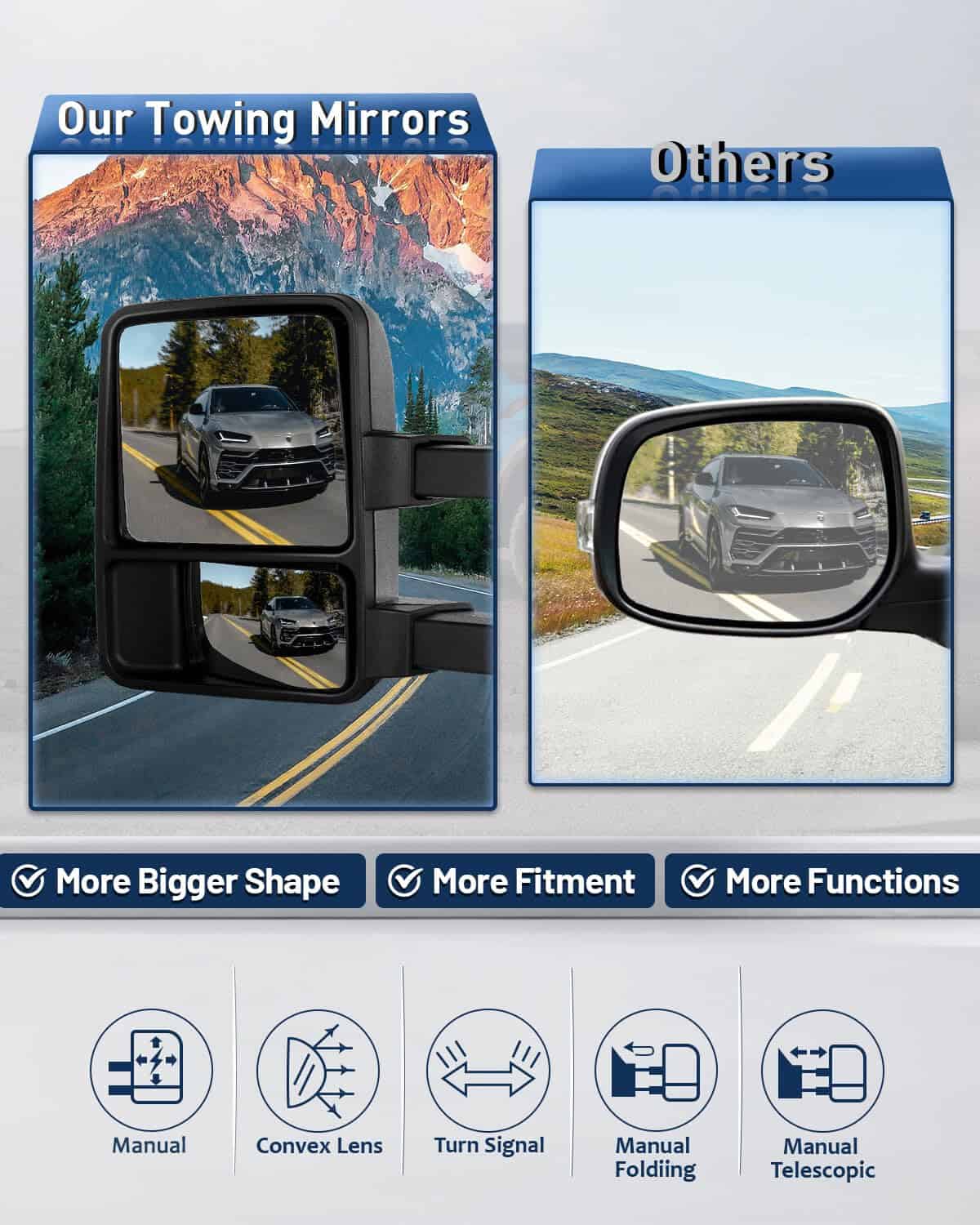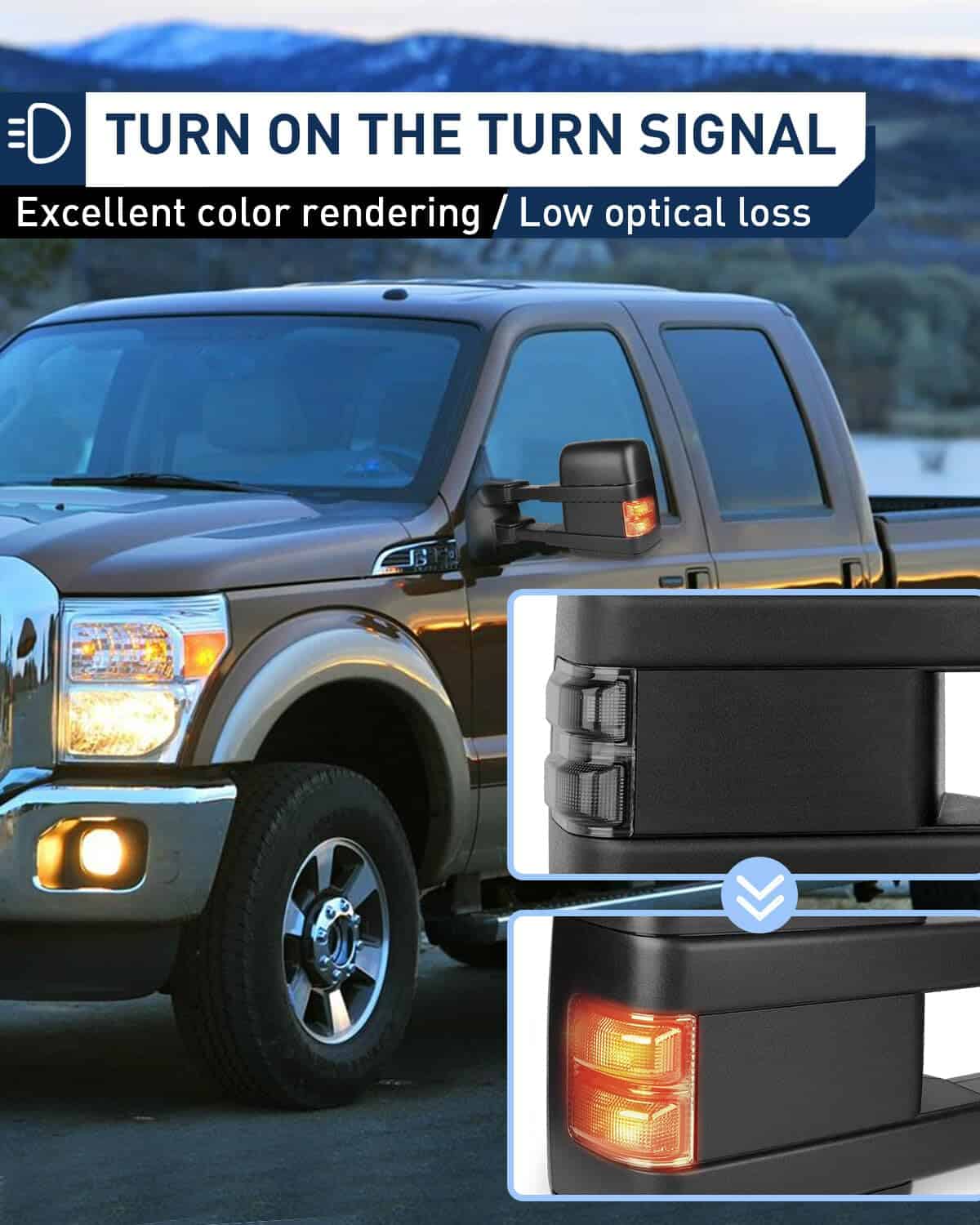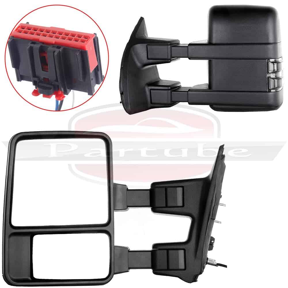 Espejos de Remolque ECCPP de Repuesto para Ford F250 F350 F450 F550 Super Duty 2008-2016 con Control Manual Negro de Luces de Señal de Giro Par de Espejos Lado del Conductor y Pasajero. Estos espejos de remolque proporcionan un ángulo de visión trasera mejorado y más amplio, mejorando la visibilidad y reduciendo los puntos ciegos. Son una actualización en seguridad vial. Nota importante: Estos espejos están diseñados para reemplazar un espejo original con estas mismas opciones. Si no tiene las opciones mencionadas, existe la posibilidad de que estos espejos no funcionen correctamente.