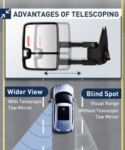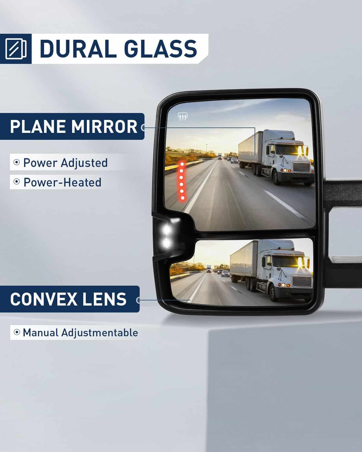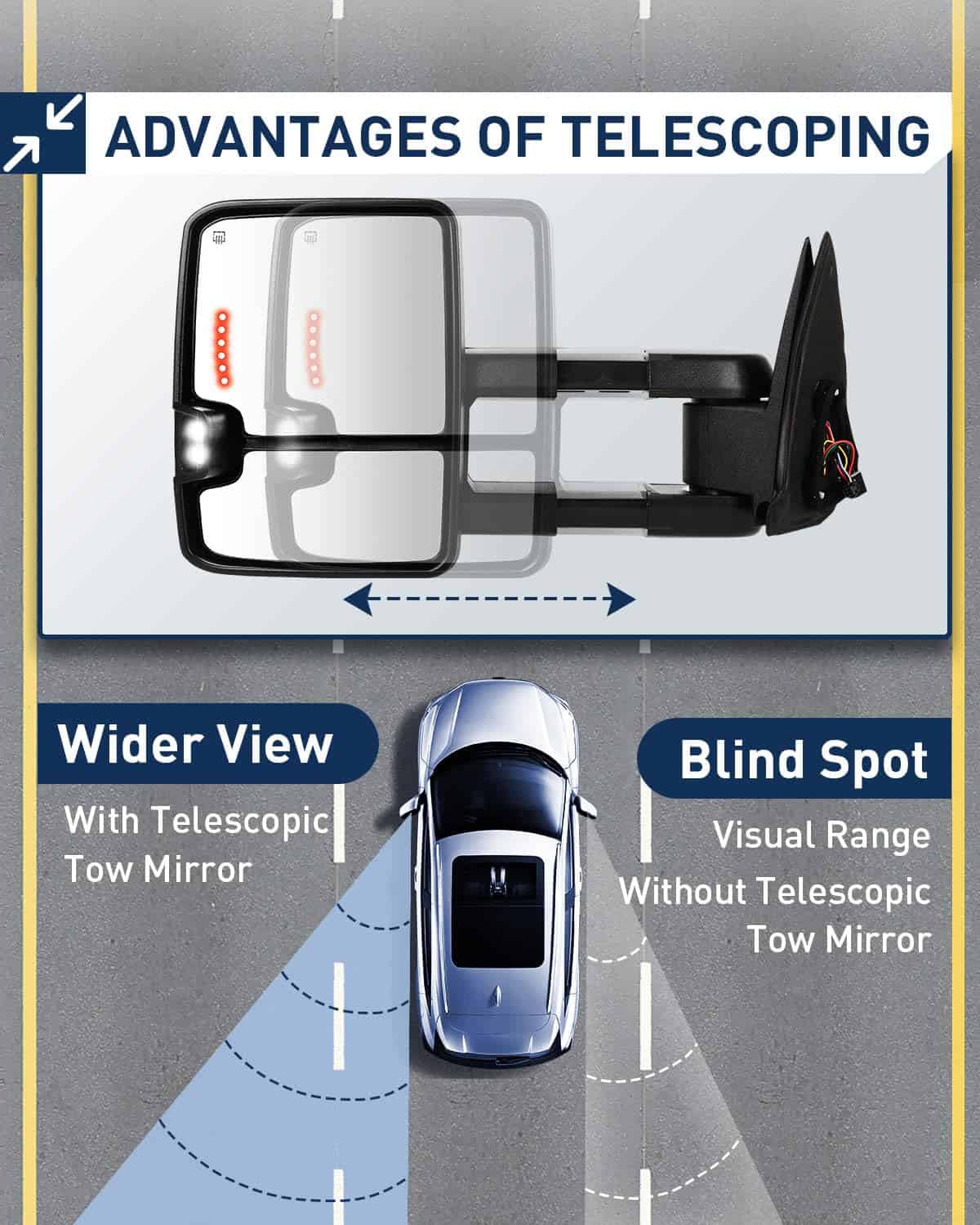 3. Excelente calidad: Nuestros espejos de remolque cumplen con estrictos estándares de control de calidad, no se sacudirán o vibrarán al conducir. Amplían el campo de visión y proporcionan un ángulo de visión trasera mejor y más amplio, reduciendo los puntos ciegos y mejorando la seguridad vial.
