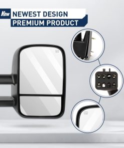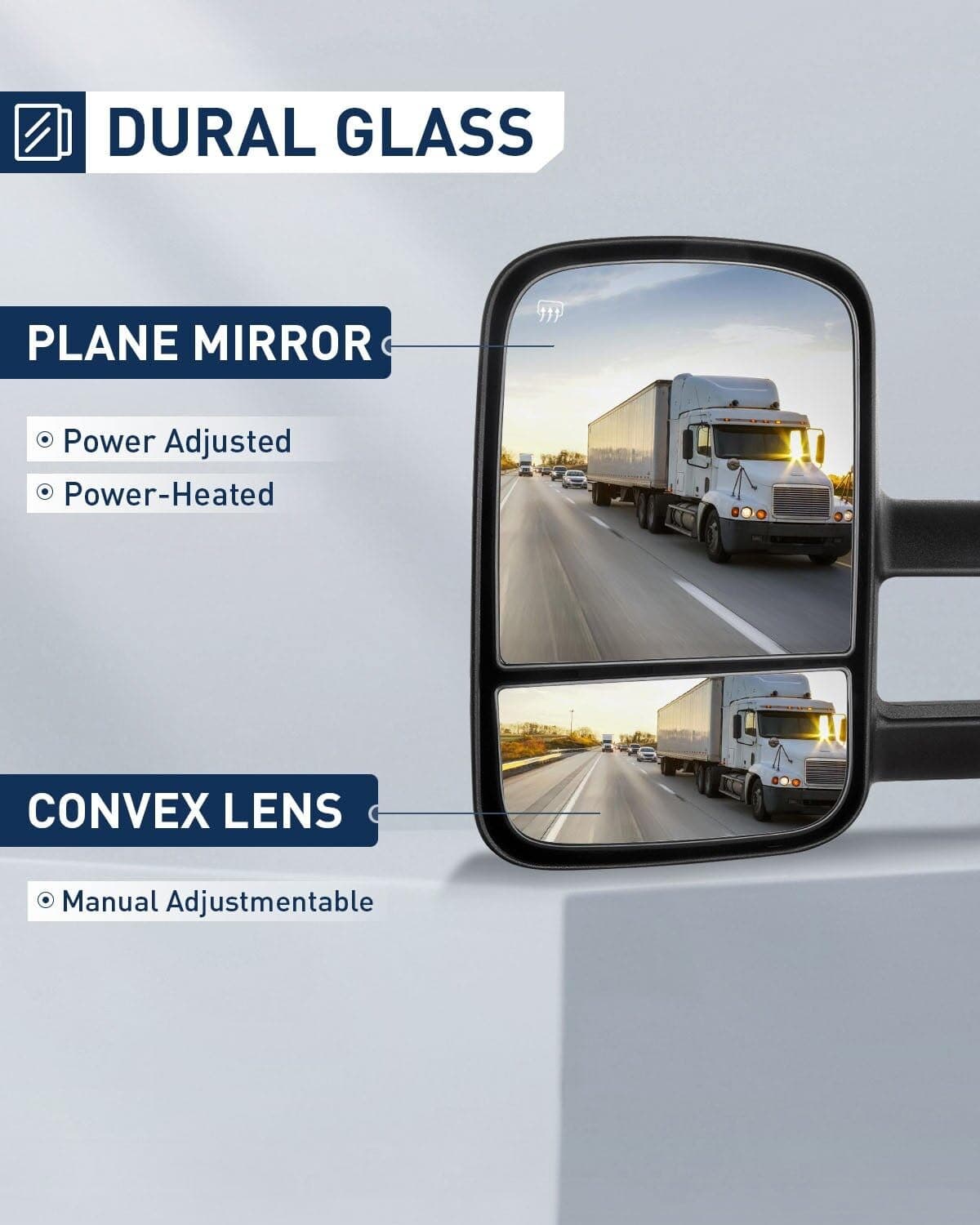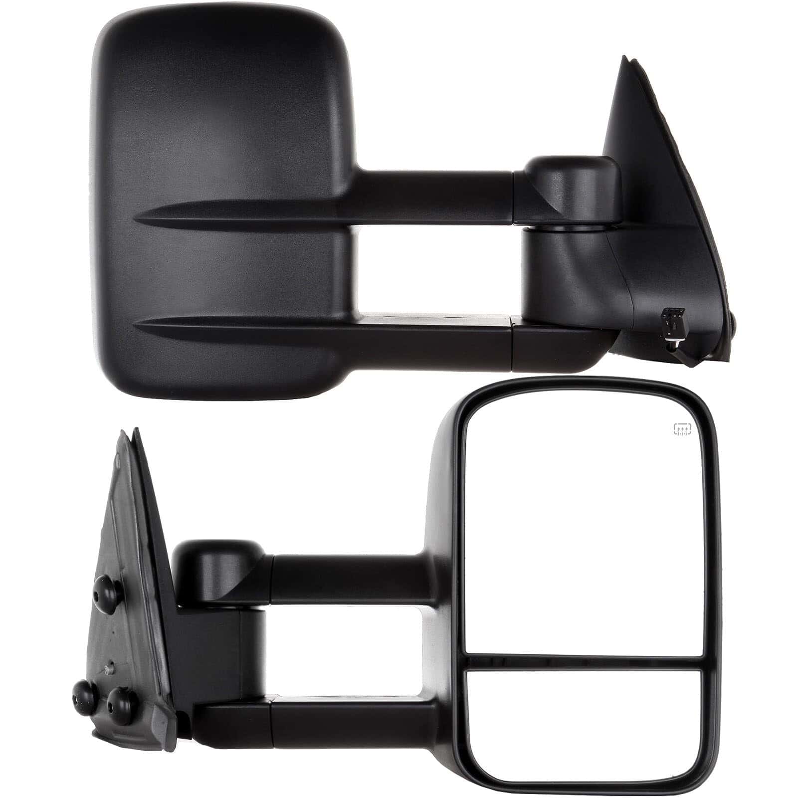Ajuste para Chevy Avalanche 1500, Avalanche 2500, Silverado 1500, Silverado 2500, Sierra 1500, Sierra 2500, Silverado 1500 HD, Silverado 2500 HD, Silverado 3500, Tahoe, Sierra 1500 HD, Sierra 2500 HD, Sierra 3500, Yukon, Yukon XL Denali, Suburban 1500, Suburban 2500, Yukon XL 1500, Yukon XL 2500, Tahoe (excluyendo modelos Z71), Yukon (excluyendo modelos Denali). Estos espejos solo funcionarán correctamente en vehículos con estas opciones exactas. Paquete incluye juego de espejos térmicos extensibles y plegables (lado izquierdo y derecho).