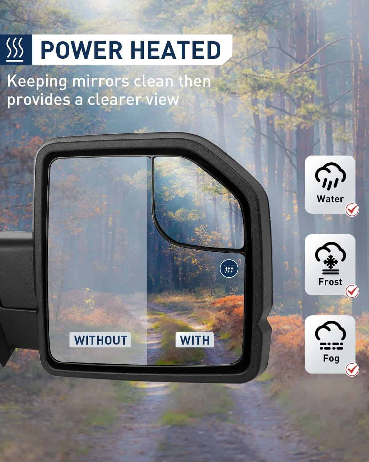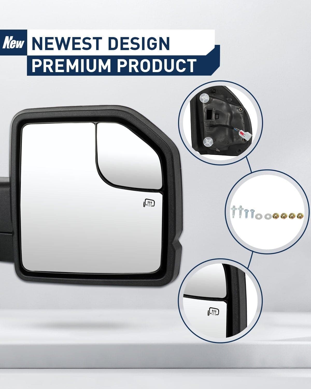 1. Compatibilidad – Los espejos de remolque son compatibles con camionetas Ford F150 de 2015 a 2020.