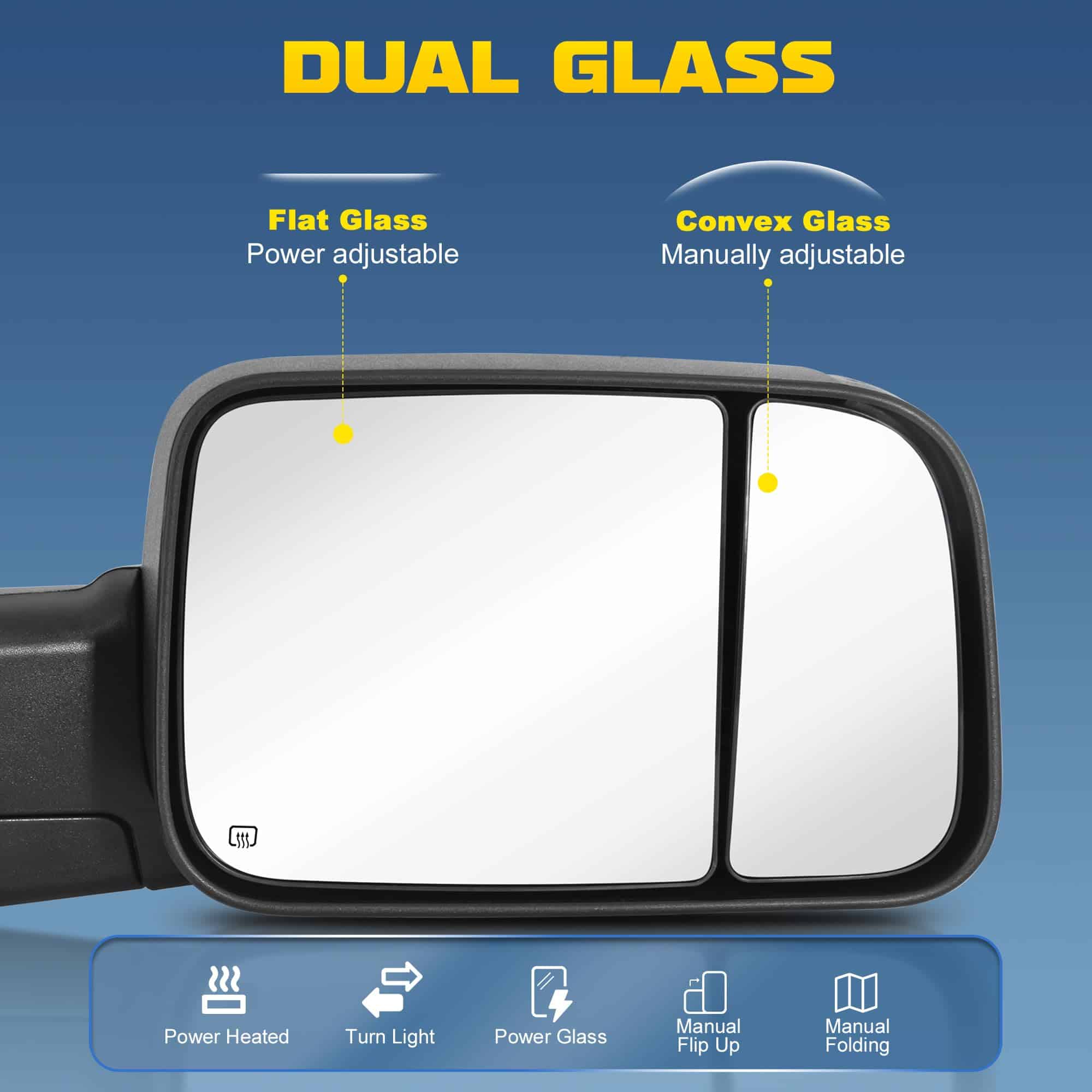 Espejos de remolque térmicos con señal de giro compatible