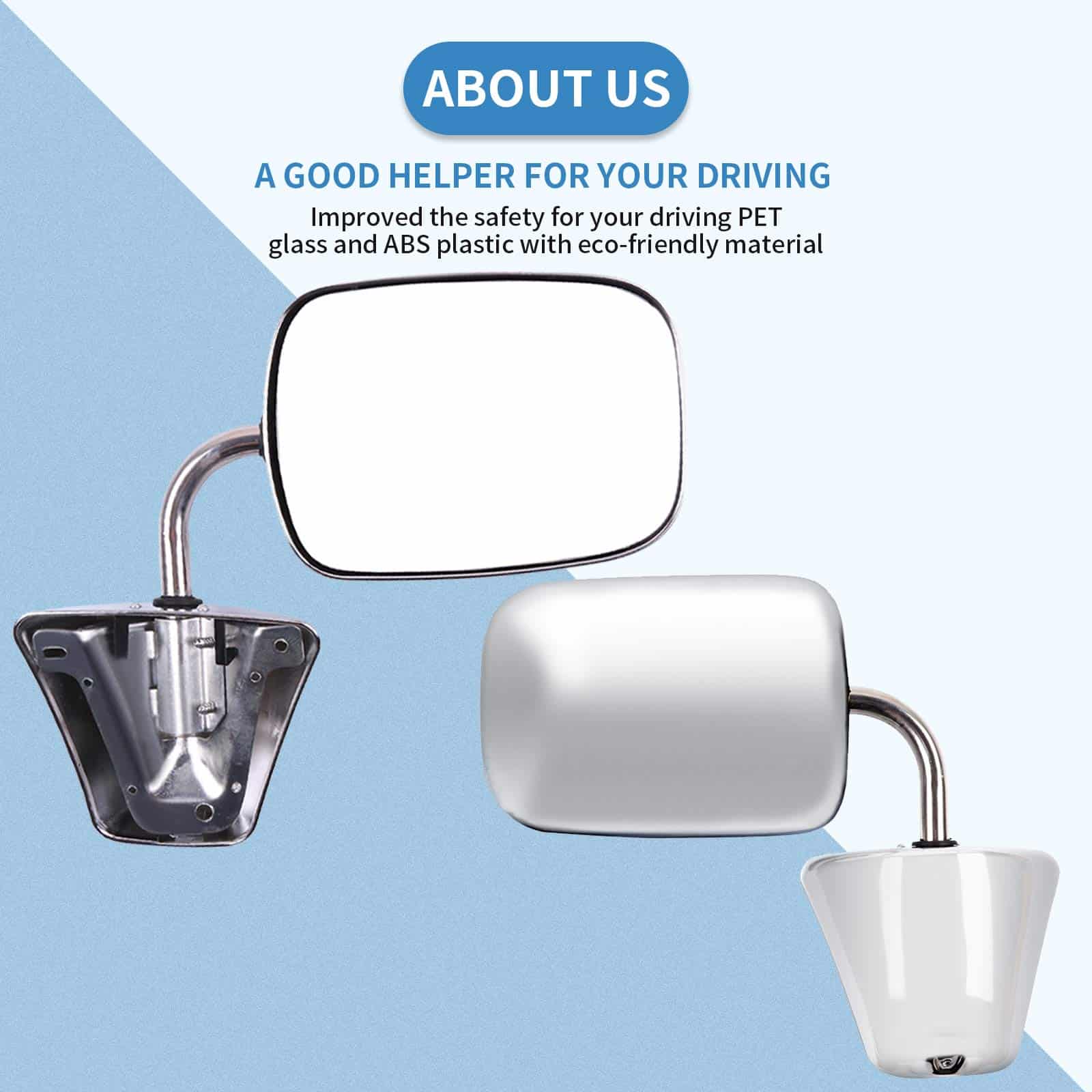 ¡Espejo nuevo para Chevy GMC Truck Suburban Blazer Jimmy! / Reemplazo de alta calidad – mercado secundario / Operación manual – Giro – Acero inoxidable / Se ajusta al lado del conductor y del pasajero / Este artículo se adapta a los siguientes años y modelos: 1973-1991 Chevy Blazer (Full Size), 1973-1991 GMC Jimmy (Full Size), 1973-1987 Chevy Pickup Truck (C/K Series), 1973-1987 GMC Pickup Truck (C/K Series), 1973-1991 Chevy Suburban, 1973-1991 GMC Suburban / Paquete incluido: Juego de pares de espejos para conductor y pasajero