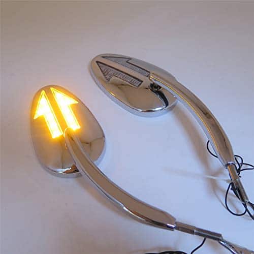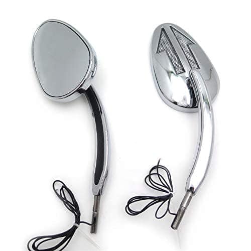 Espejos laterales con intermitentes LED de alta calidad, duraderos y fáciles de instalar. Proporciona una vista clara y resistente a grietas o roturas. Incluye un par de espejos (izquierdo y derecho) con especificaciones de ajuste detalladas para varios modelos de Harley Davidson como Electra Glide Ultra Classic, Road King Classic, Sportster XL1200C, V-Rod, entre otros. Compatible con modelos de Touring, Trike y otros modelos específicos.