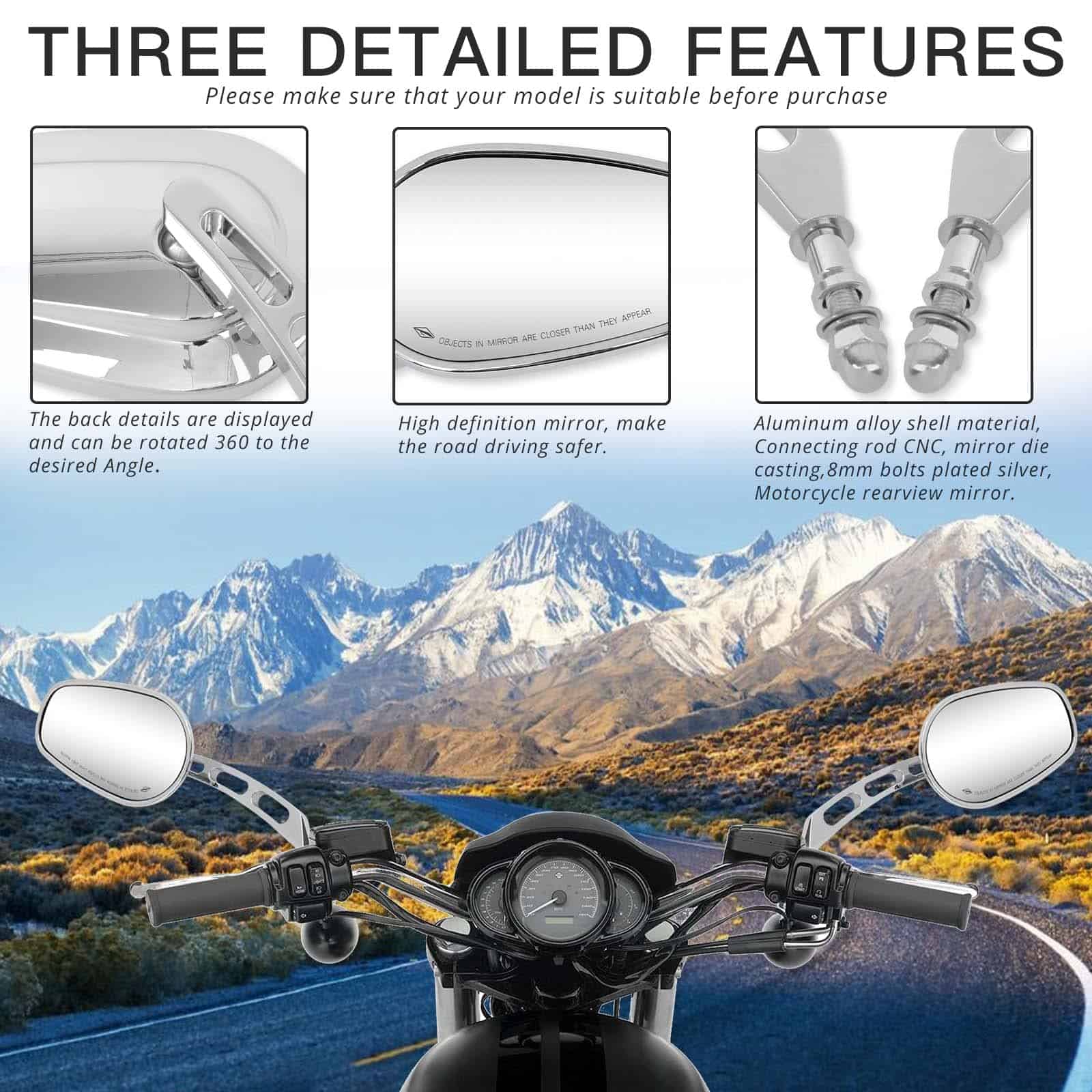 Espejos Laterales para Motocicleta 8mm Cromados Para Harley