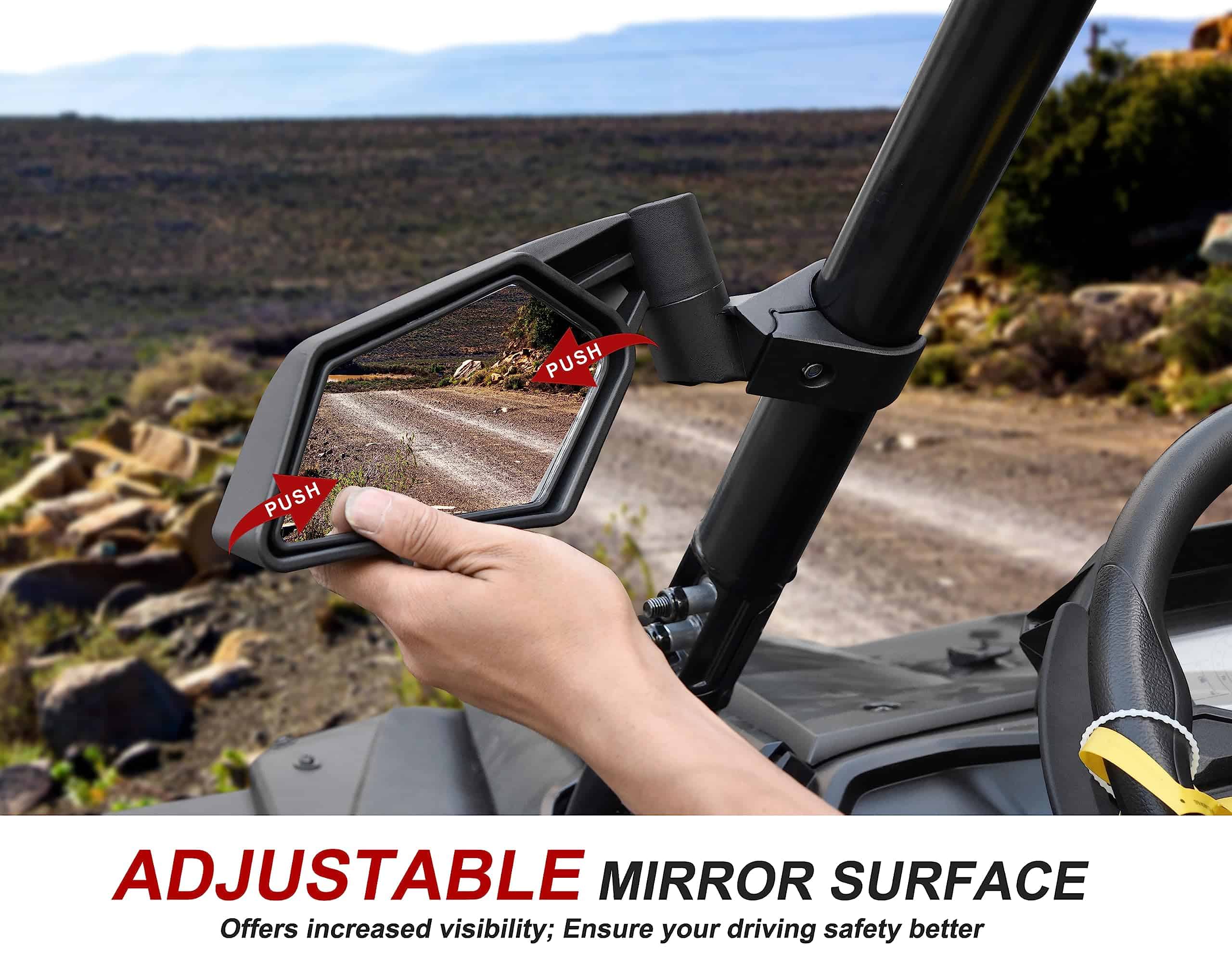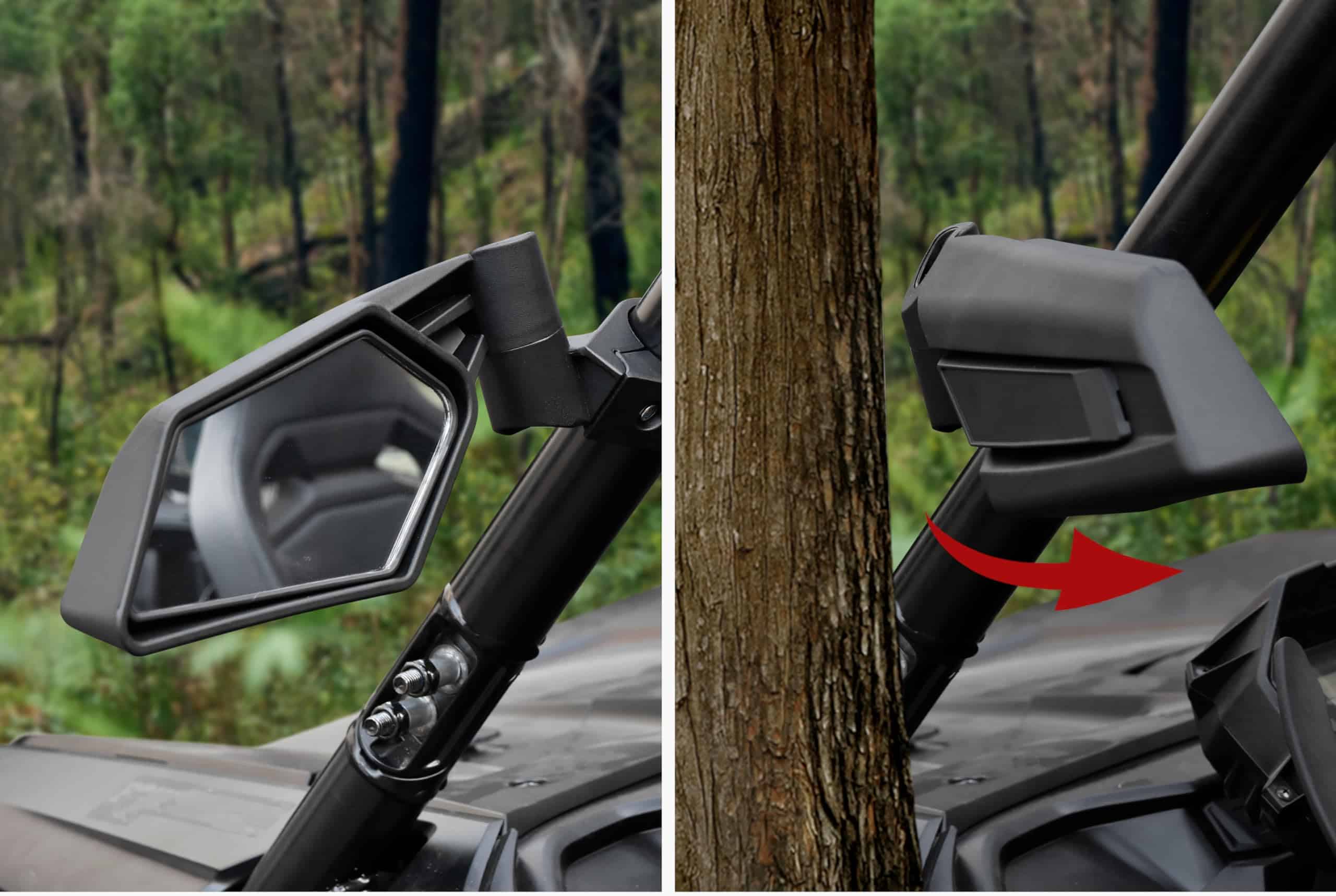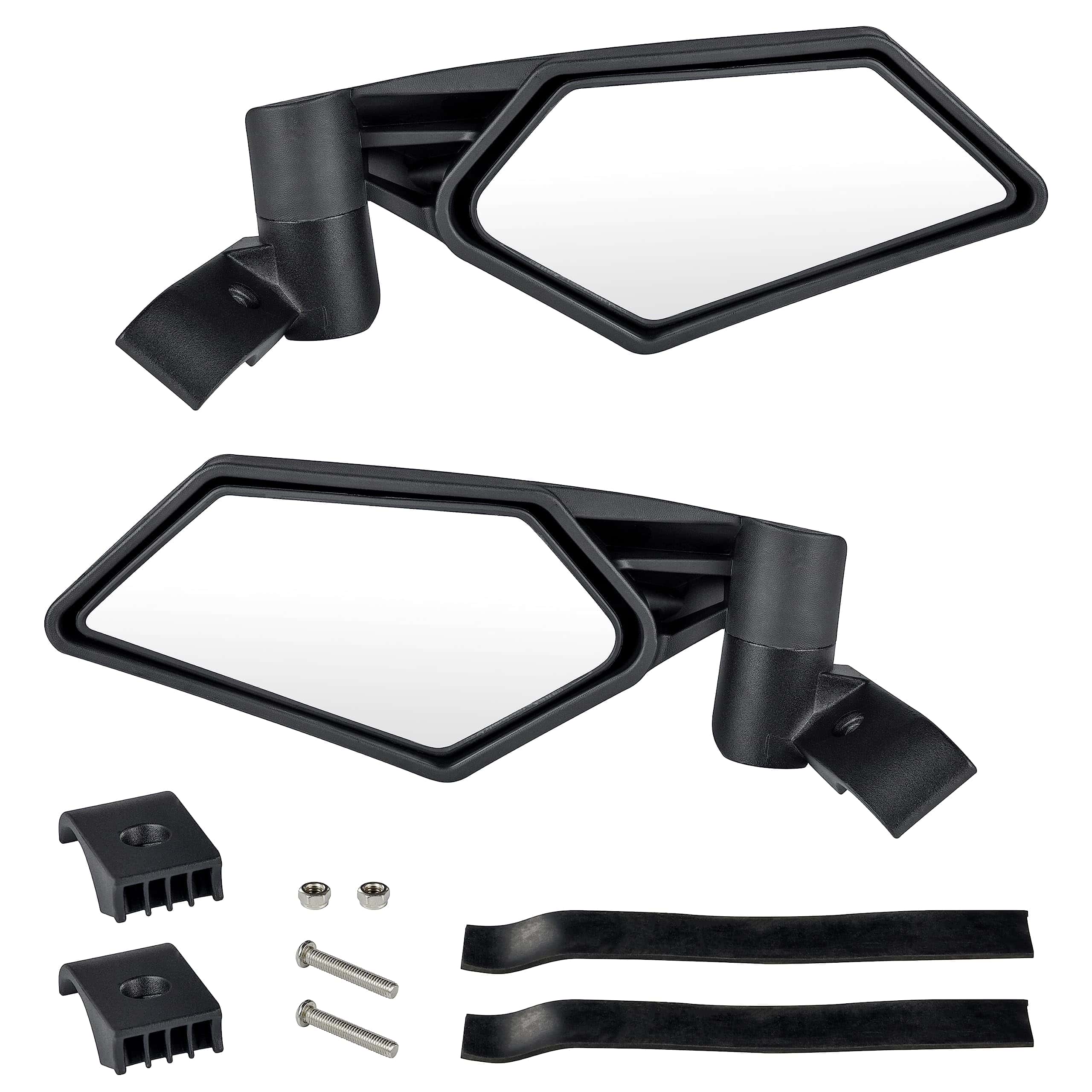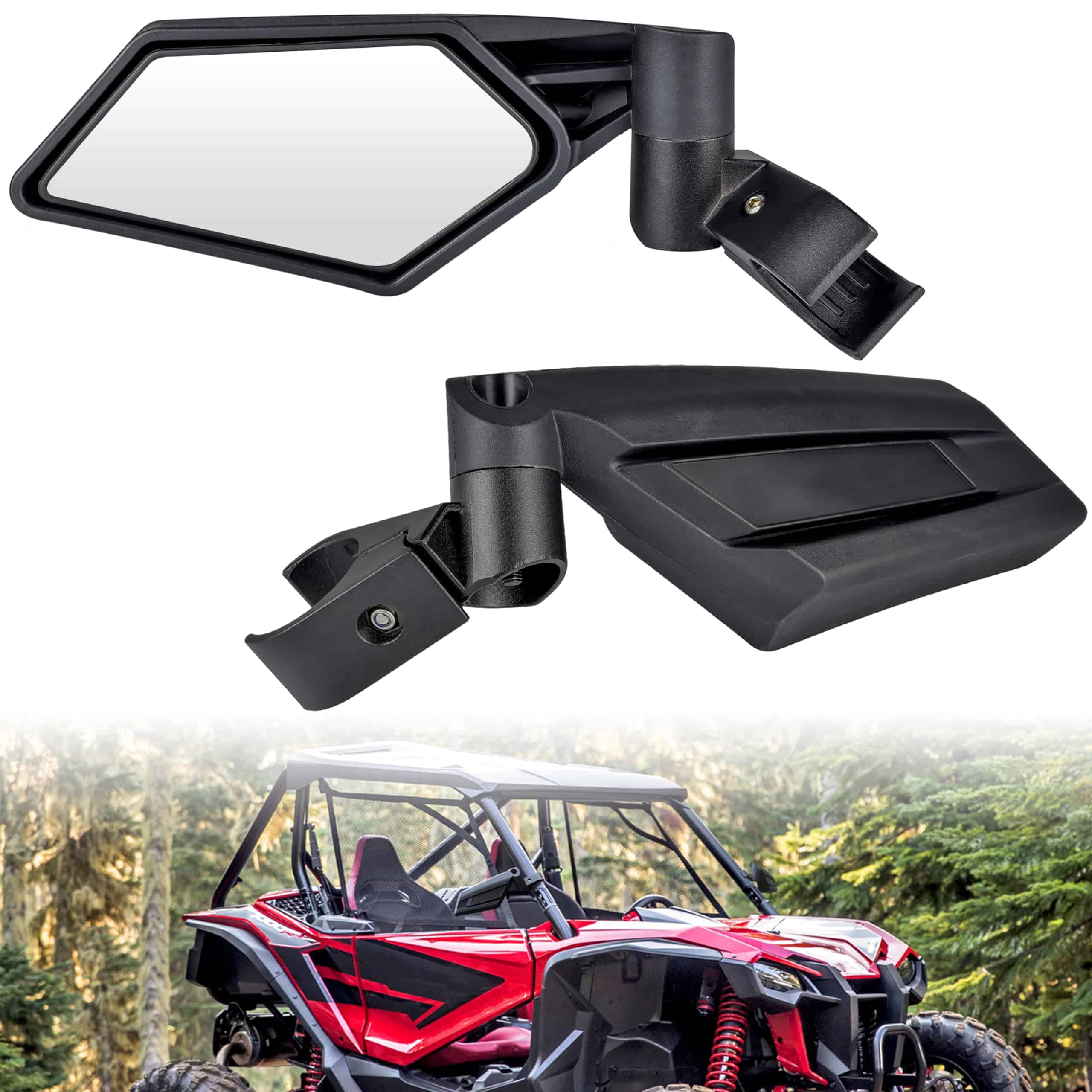 Compatible con Honda Talon 1000R & 1000X 2019-2020, Talon X4 2020. Los Espejos laterales plegables ajustables pueden ayudarte a obtener un punto de vista claro de lo que te rodea y ofrecen una visibilidad aumentada, ajustable para conductores de diferentes tamaños. Acabado negro mate, en consonancia con el diseño elegante de su vehículo, compuesto con un espejo ajustable y soportes de bisagra desmontables, que pueden plegarse y resistir daños en situaciones ajustadas. El paquete incluye: 1 par de espejos laterales plegables con hardware de montaje.