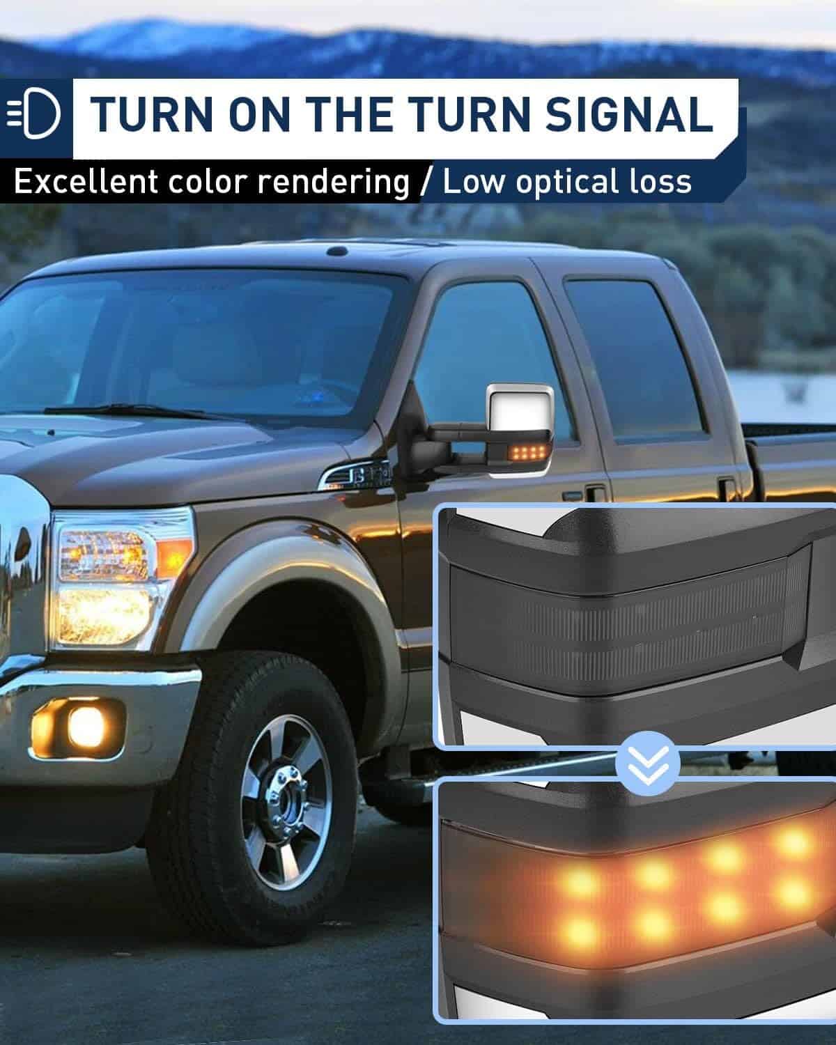 – LUZ DE SEÑAL DE GIRO: La luz de giro integrada en estos espejos proporciona una advertencia clara a otros conductores cuando usted desea cambiar de carril o girar, mejorando la seguridad vial.
