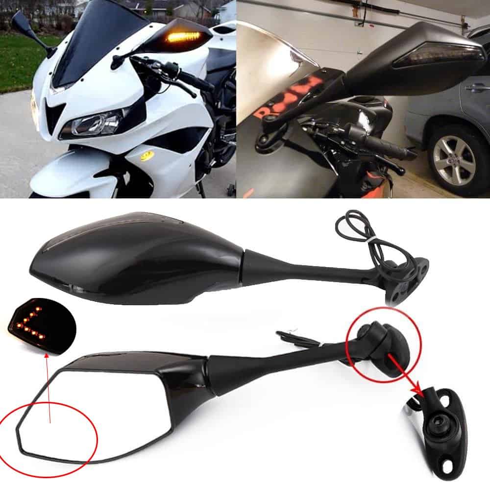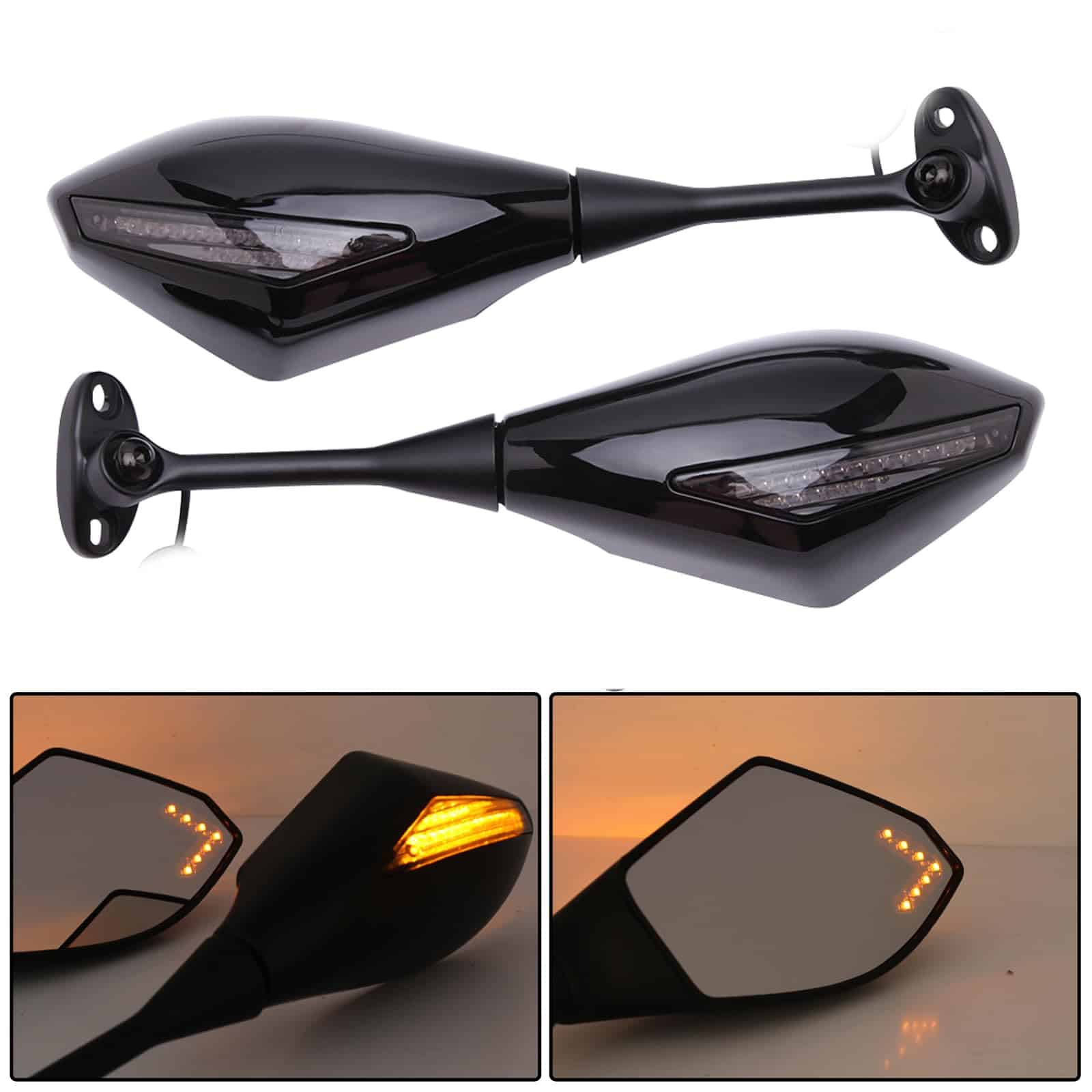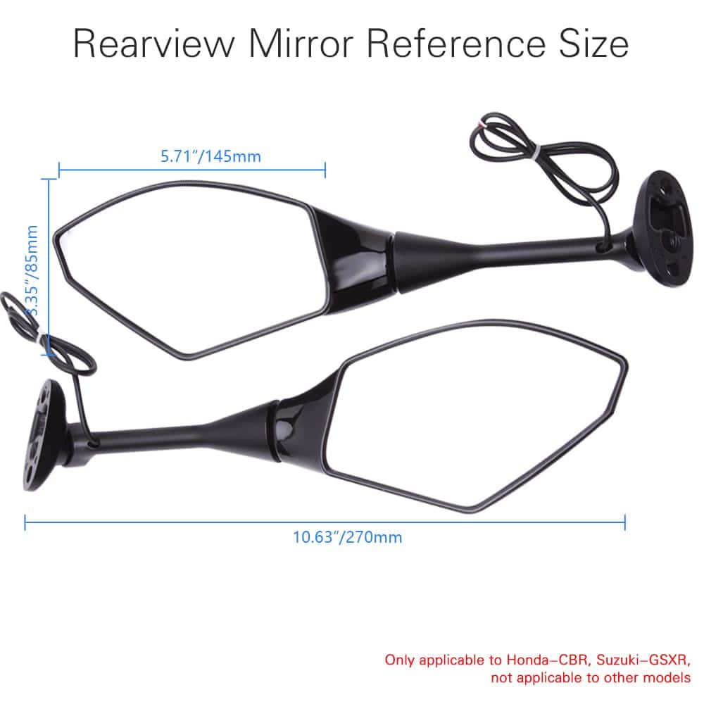 Conjunto de 1 par (izquierdo y derecho) de espejos laterales con intermitentes LED. Compatible con Honda CBR600RR, CBR1000RR, CBR250R. Para más detalles consulta la descripción arriba.