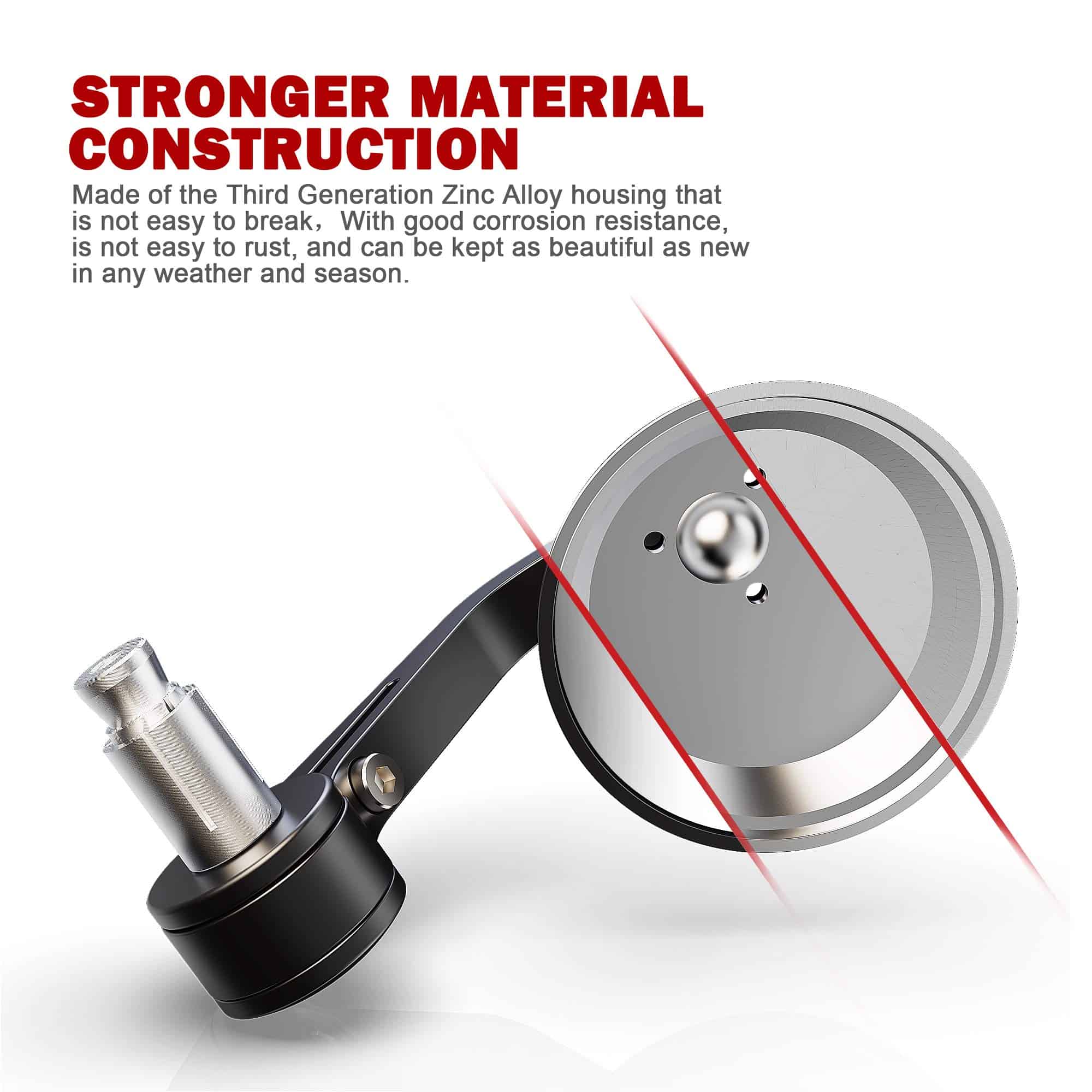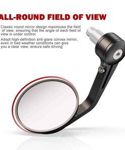 Características: Buena resistencia al clima y superficie lisa Se puede ajustar manualmente el ángulo del espejo, más flexible para ser usado El diseño de espejos convexos hace que los objetos aparecerán más pequeños y más lejos para proporcionar al conductor una vista más grande de lo que hay detrás de él Fácil de instalar, inserte directamente en el manillar hueco o sujete Su diseño elegante decora tu motocicleta