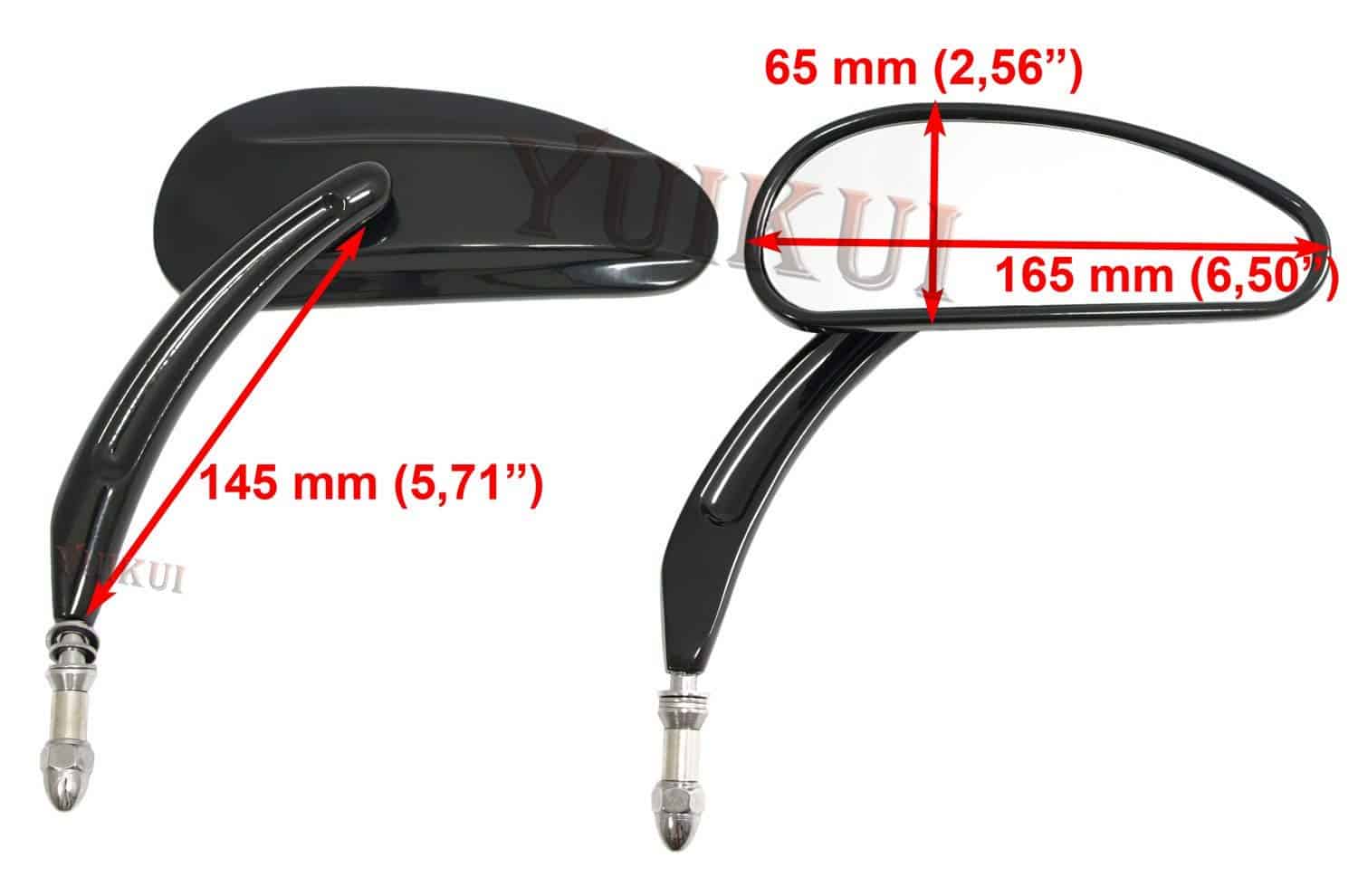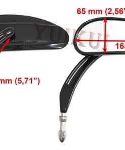 Características: Material de la carcasa: hecho completamente de aluminio con propiedades mejoradas (que garantizan la durabilidad de uso) . Tecnología: coloración a alta temperatura en negro, cromado según registradora 8 (3 etapas: cobre, níquel y cromo siguiente), tal tipo de proceso garantiza la durabilidad de la superficie y un hermoso brillo en condiciones climáticas cambiantes) Diseño: Ángulo del espejo ajustable libremente por diseño giratorio. Espejo ligeramente elíptico: debido a que cubre un campo de visión más grande, el nivel de seguridad es más alto. Material del espejo: cristal antideslumbrante (que proporciona un alto detalle de la imagen y difunde la luz). Ajuste: compatible con motocicletas Harley-Davidson desde 1982-2019 (excepto las excepciones indicadas a continuación): No se ajustan: VRSCF, XG750A, FLHR (14-16), FLHRC (14-16), FLHRSE (14-16), FLHTCUSE (11-13), FLHTKSE (14-), FLTRXSE (18-), XL1200X (versión con espejos montados debajo del volante) Paquete incluido: 1 juego (izquierdo y derecho) de espejos Tamaño del tornillo, M8x1.25x50mm 2 piezas Preguntas: Todos los correos electrónicos serán respondidos dentro de las 24 horas durante días hábiles Yuikui Racing