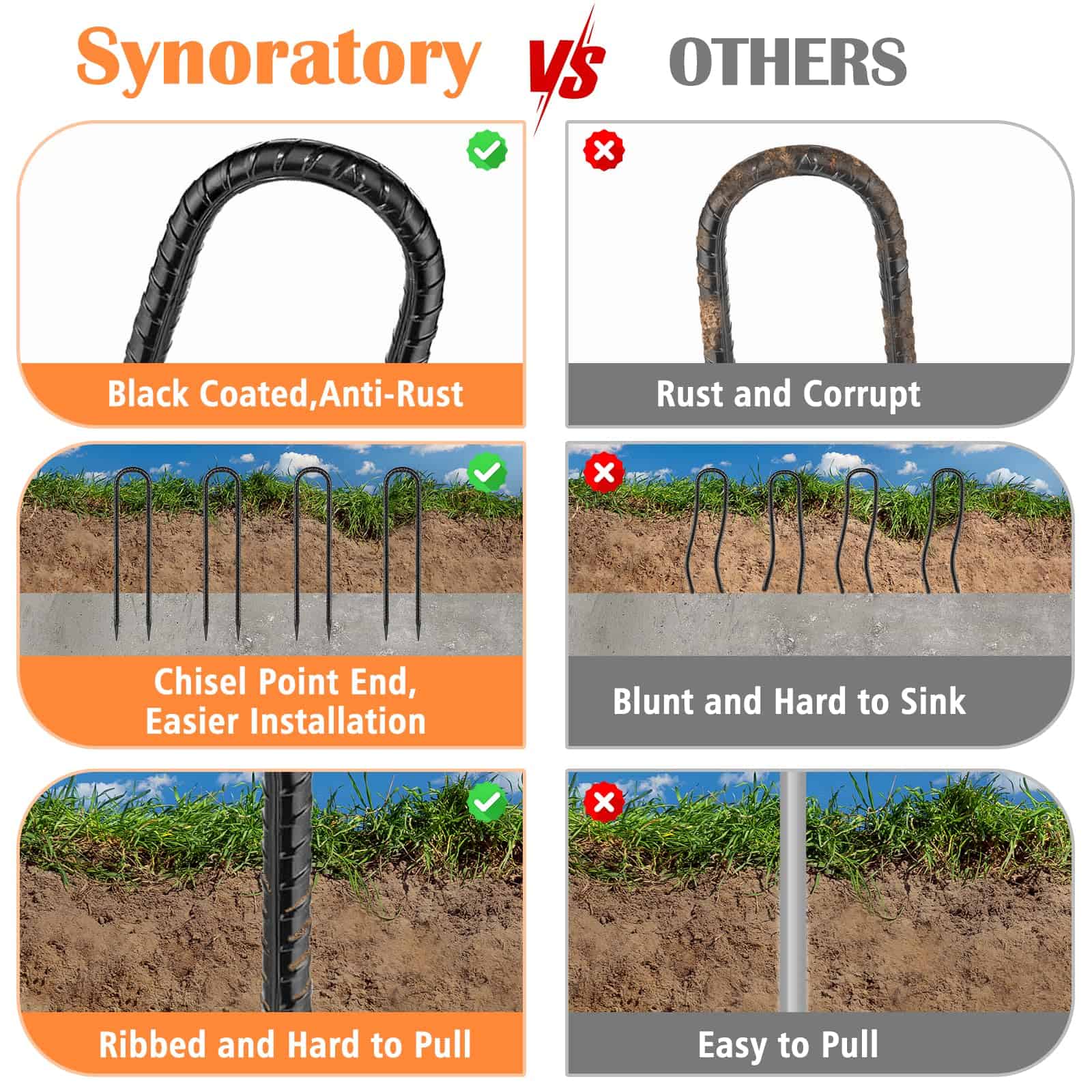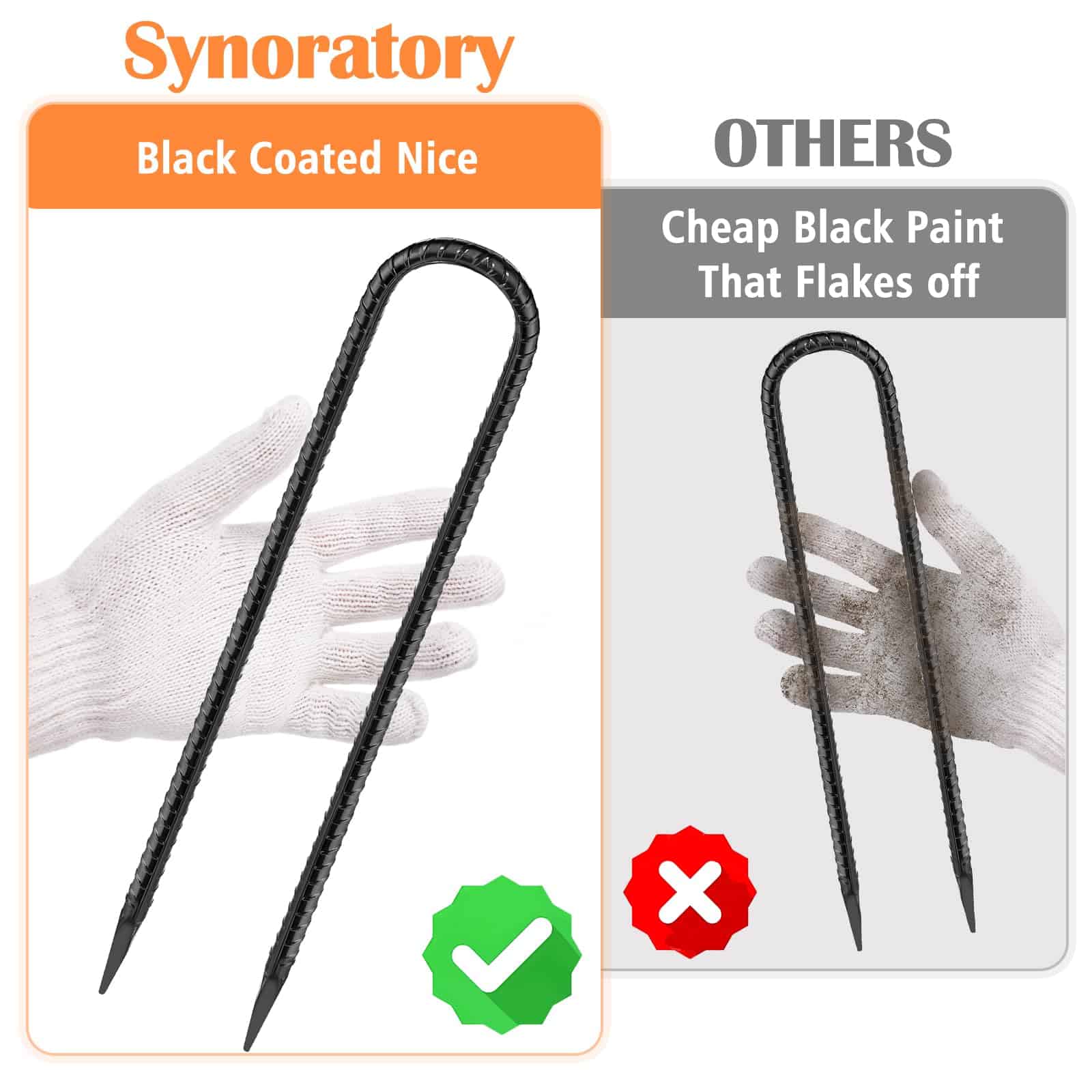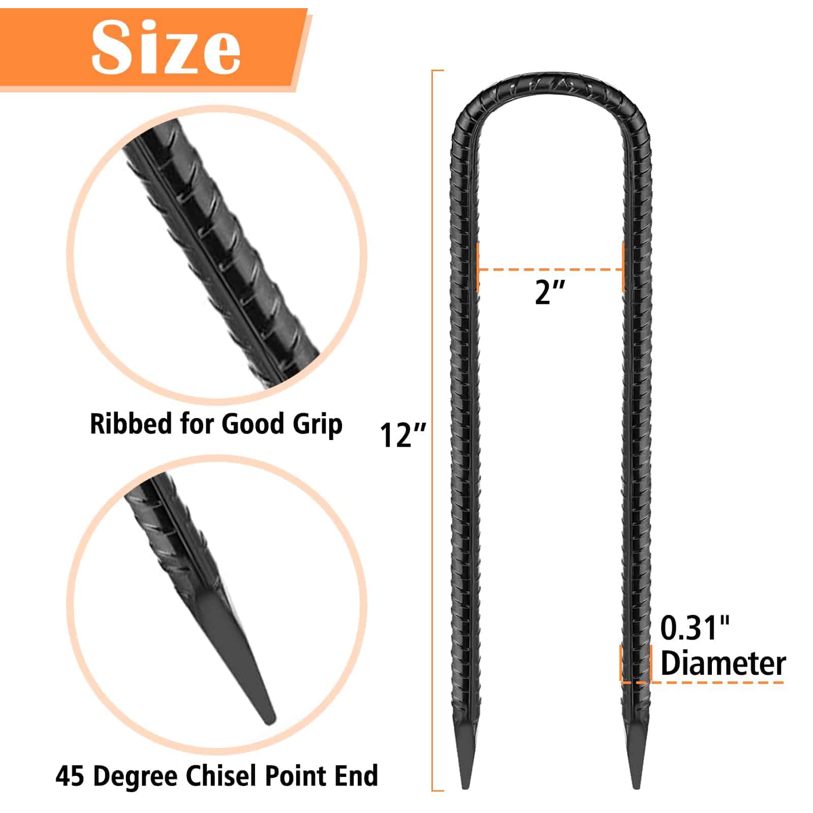 El diseño de punta cincelada permite una instalación fácil en suelos y terrenos difíciles, mientras que la superficie texturizada garantiza un agarre firme. Hechas de acero galvanizado con un recubrimiento negro resistente a la oxidación, estas estacas de anclaje son duraderas y resistentes a la presión.