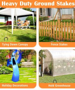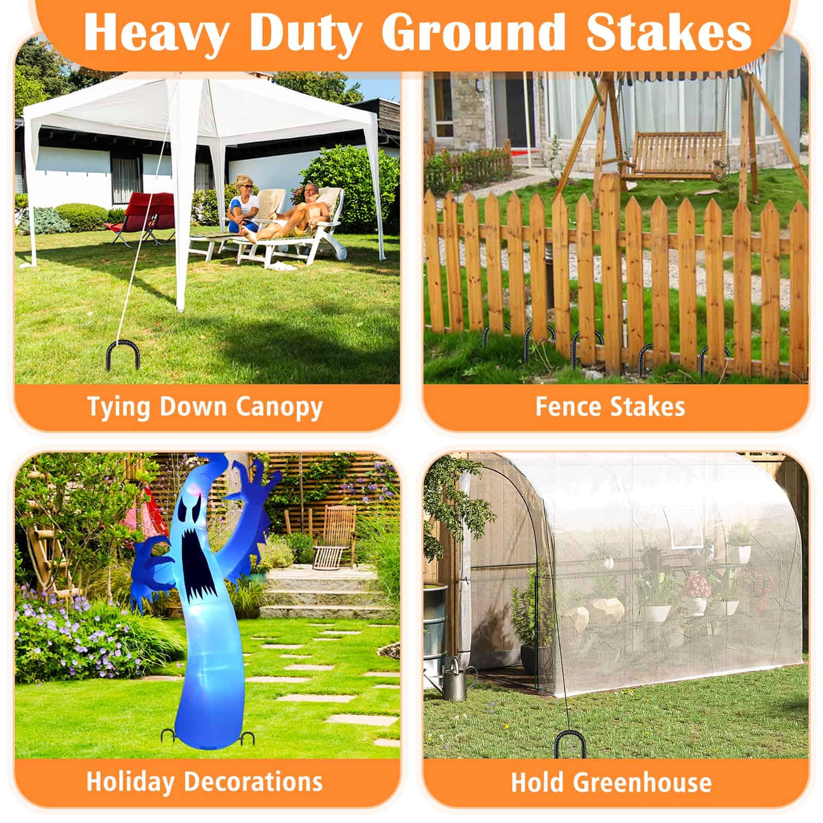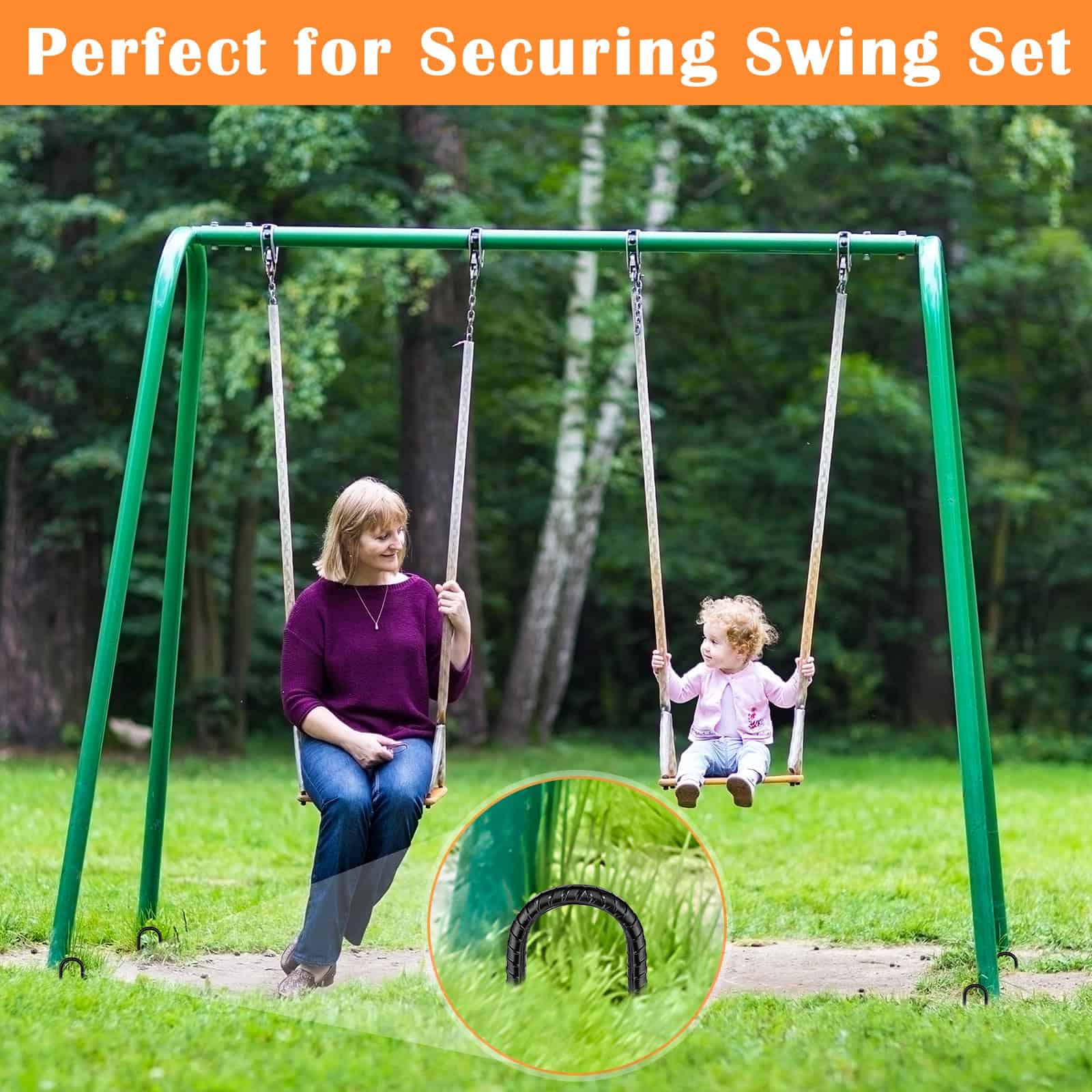 Estas estacas de anclaje para trampolín son esenciales para mantener su trampolín seguro y estable en cualquier entorno. Cada juego incluye 10 estacas de 12 pulgadas de largo, con un diámetro de 8 mm y un espaciado de 2 pulgadas entre ganchos. Perfectas para asegurar trampolines, columpios, porterías de fútbol, tiendas de campaña, cercas de cadena, y más.