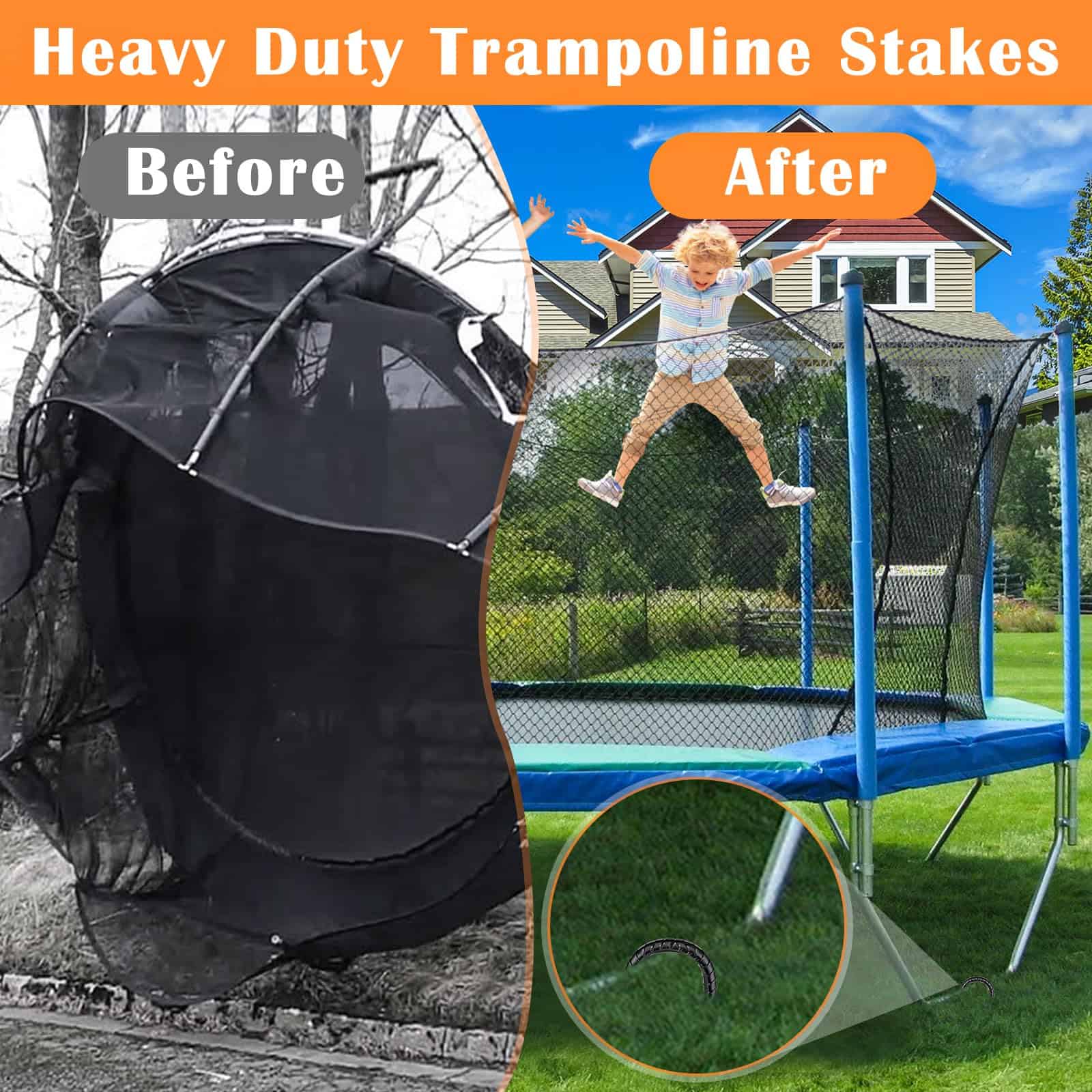 Además de asegurar trampolines, estas estacas son versátiles y reutilizables, y se pueden utilizar en jardines, patios, camping, etc. Proteja la seguridad de sus hijos al estabilizar trampolines y otros equipos de juego para prevenir accidentes. Invierta en accesorios de anclaje adicionales para garantizar la estabilidad de su trampolín y la tranquilidad de los padres.