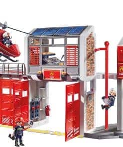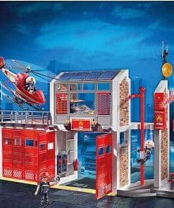 Combate incendios las 24 horas en la estación de bomberos. ¡Esta estación viene con todo el equipo necesario para emergencias pequeñas y grandes! Utiliza el centro de control para monitorear todas las emergencias entrantes. Cuando suena la alarma en funcionamiento, ¡deslízate rápidamente por el poste para llegar al incendio rápidamente o sal al helipuerto para volar a la escena. El helicóptero de lucha contra incendios está en camino para combatir el fuego desde arriba. Puedes guardar tu vehículo de bomberos en el garaje, una vez que la emergencia haya terminado, y dirigirte hacia arriba a las literas abatibles para descansar. El set incluye dos figuras, helicóptero, cascos, megáfono, linterna, extintor de incendios y otros accesorios. Dimensiones: 24 x 8,3 x 14,2 pulgadas (LxANxAL). Recomendado para niños a partir de cuatro años. Advertencia. PELIGRO de asfixia. Contiene una pelota pequeña y piezas pequeñas. No apto para niños menores de 3 años.