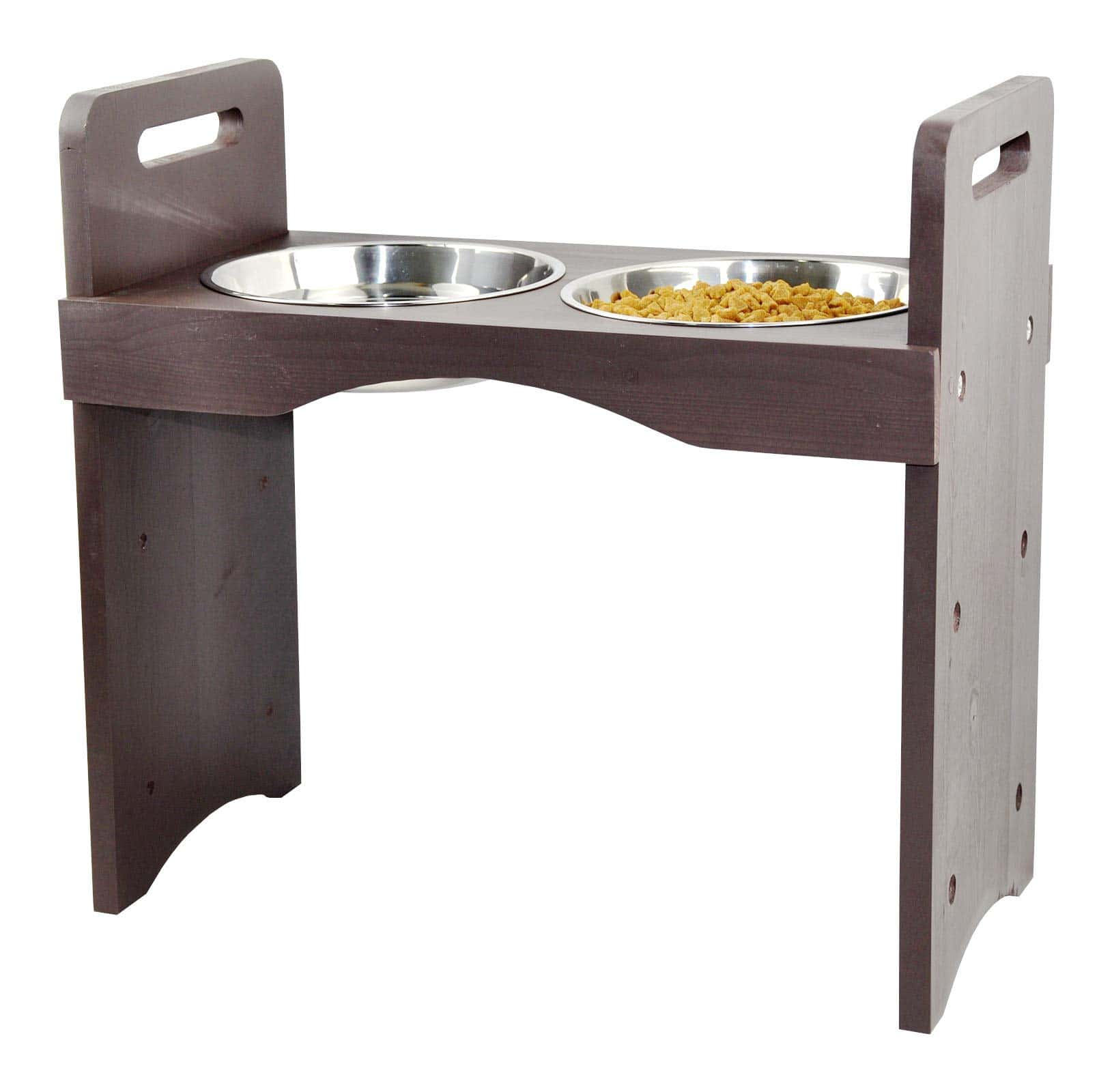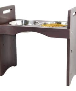 2. Soporte hecho de madera maciza de pino natural con estilo marrón oscuro, recubierto de laca resistente al agua para una limpieza fácil. Incluye 2 tazones extraíbles de acero inoxidable para rellenar y limpiar fácilmente, aptos para lavavajillas. Capacidad de cuenco: 3 tazas (0.75 cuartos). Mezcla de madera marrón oscuro y acero industrial, versátil y creativo que combina bien con cualquier estilo de decoración del hogar.