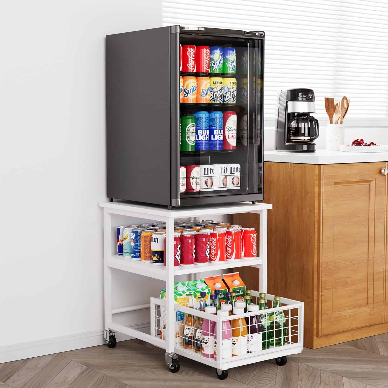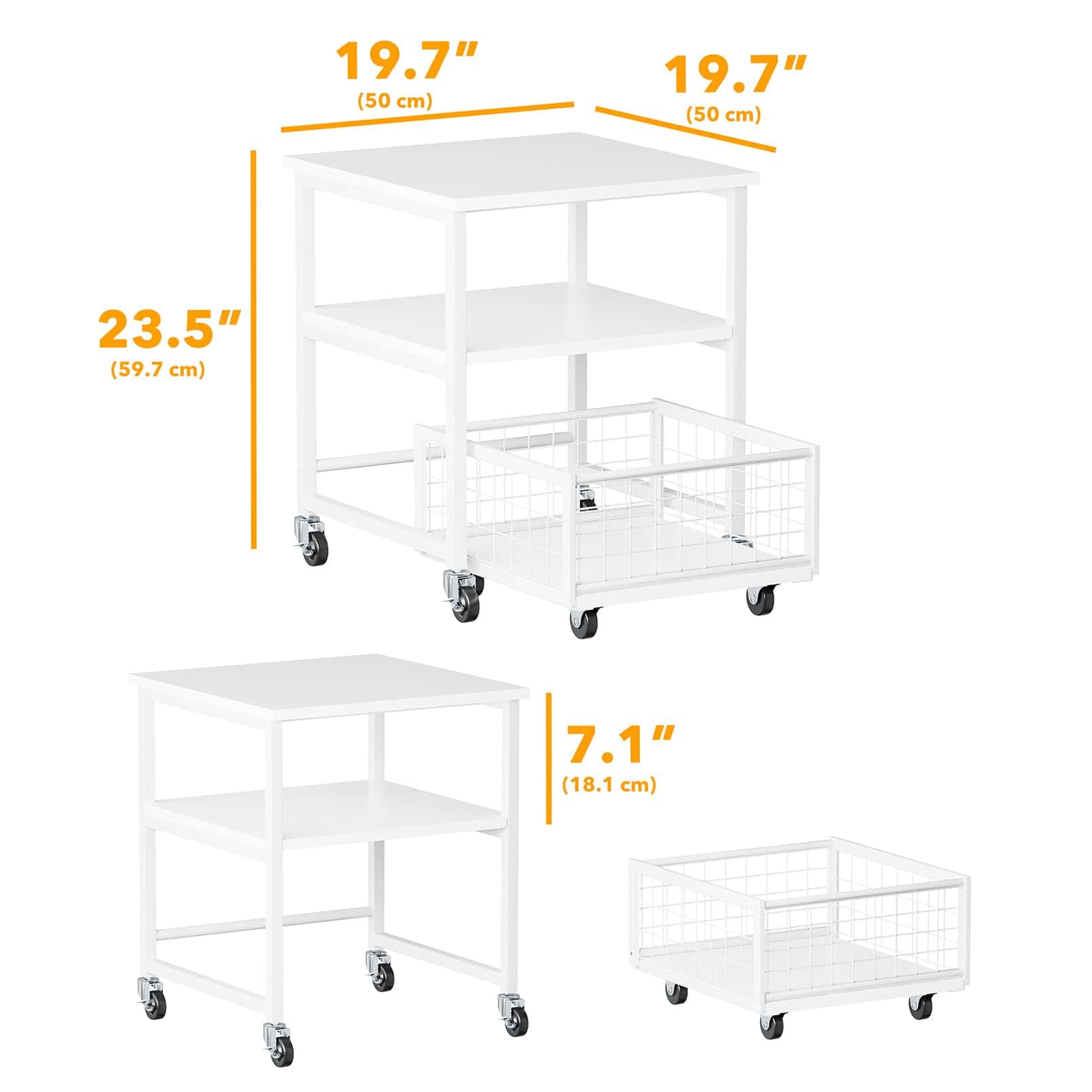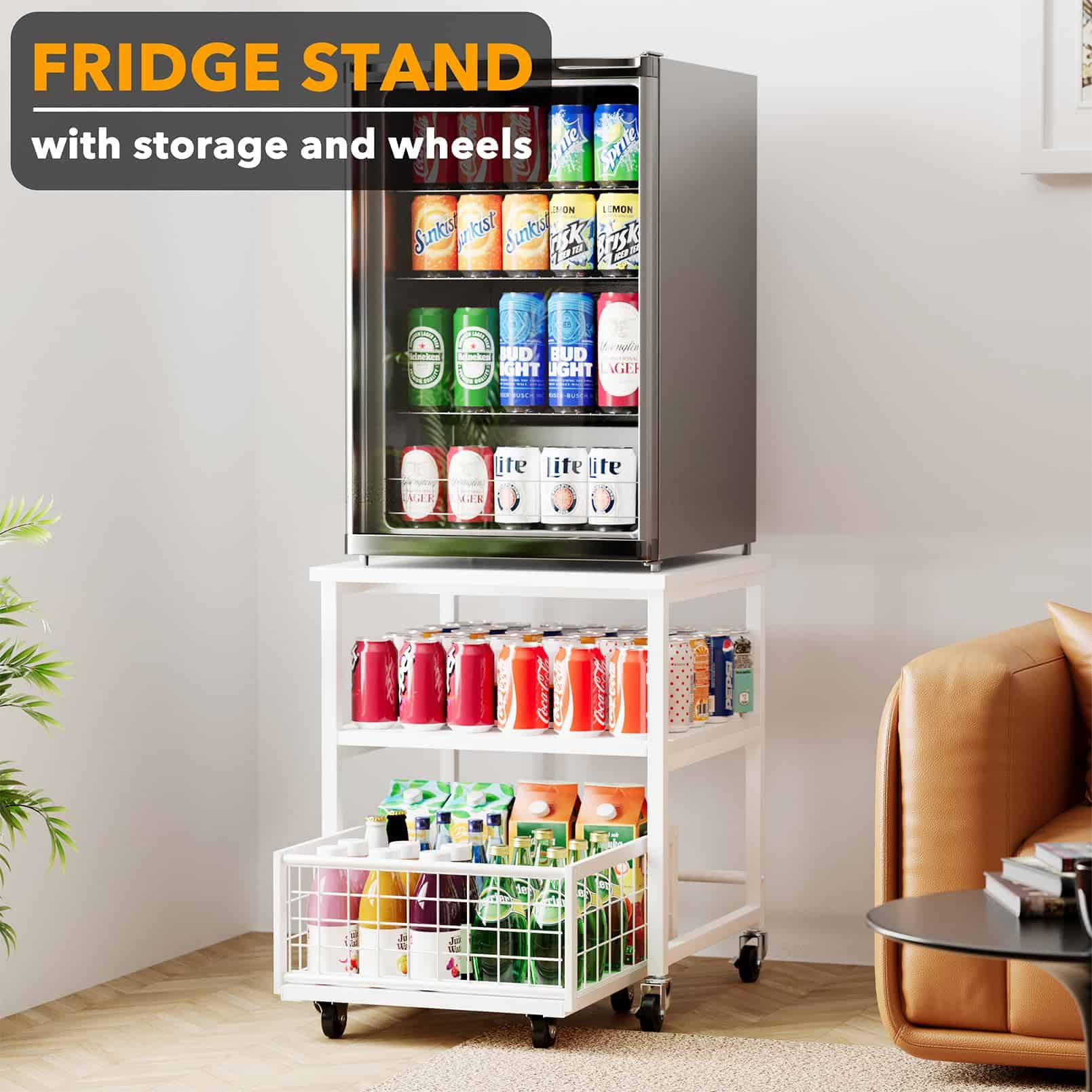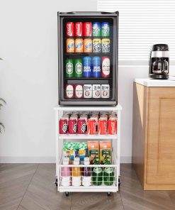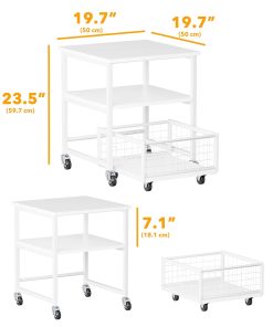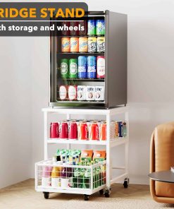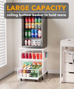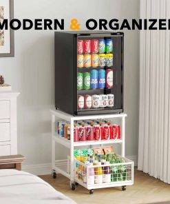 Estante para Mininevera de 3 Niveles con Almacenamiento y Ruedas, Mesa de Estante Móvil para Refrigerador de 19.7×19.7in de Alta Resistencia, Carrito Organizador para Refrigerador con Canasta de Cajón para Hogar Dormitorio Oficina (Blanco)