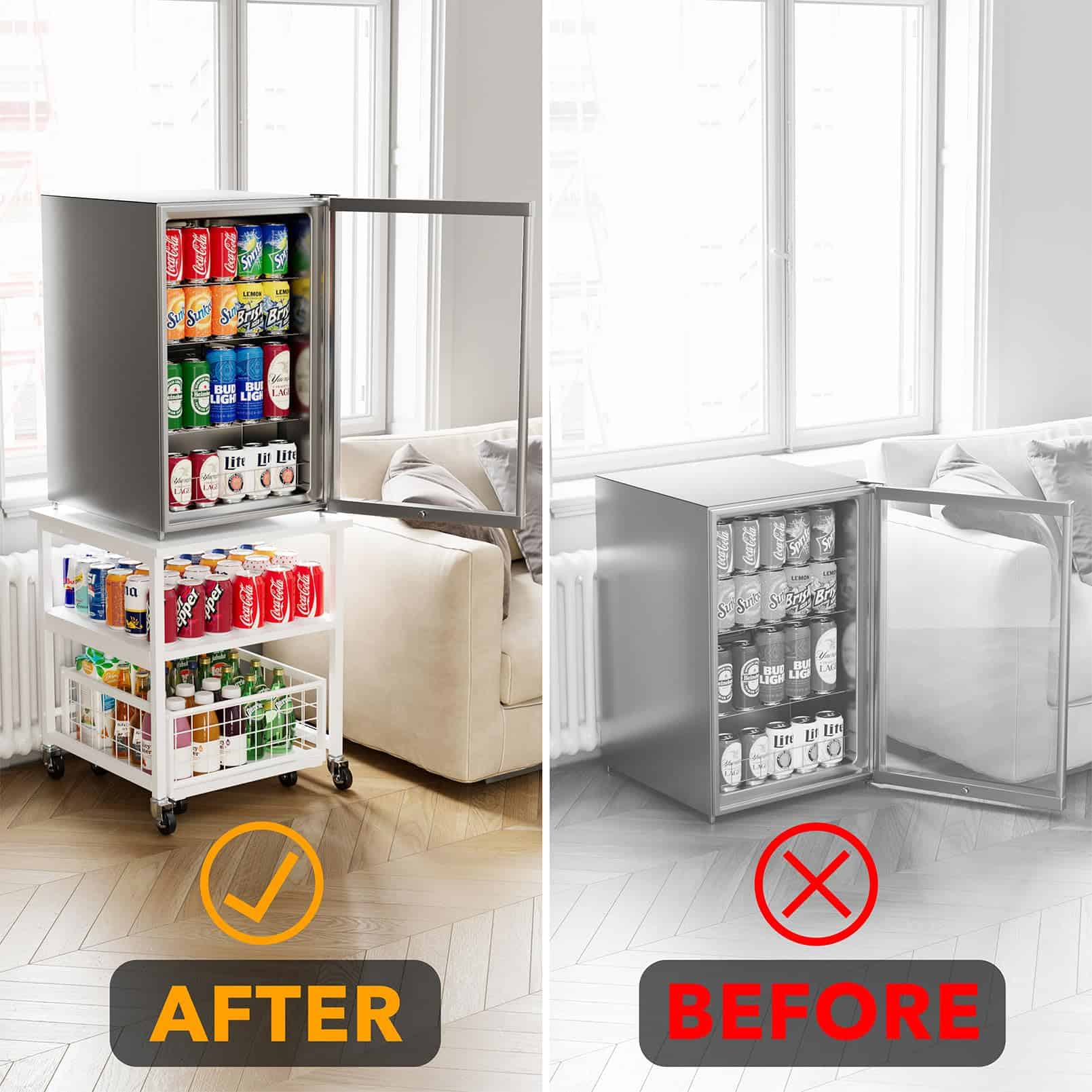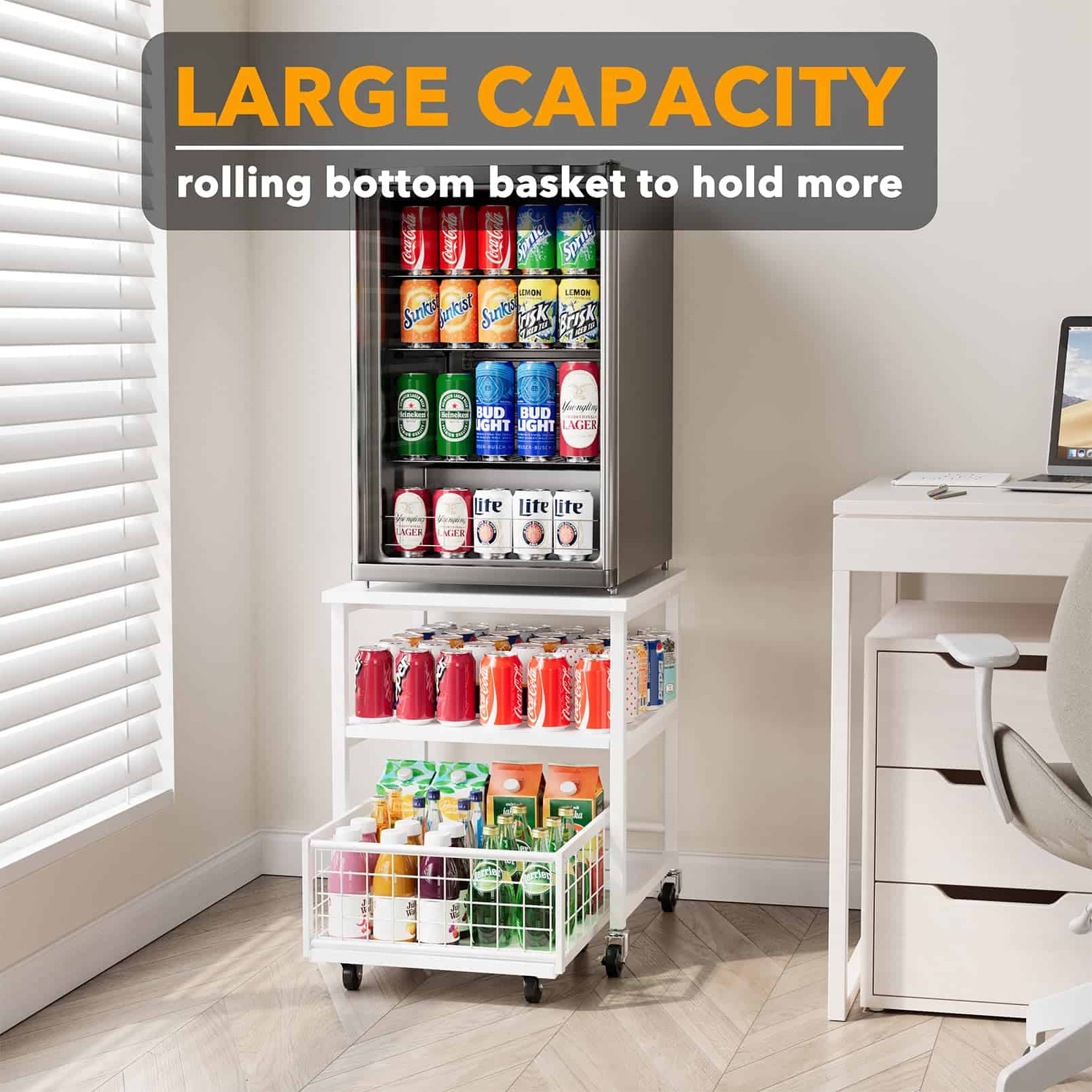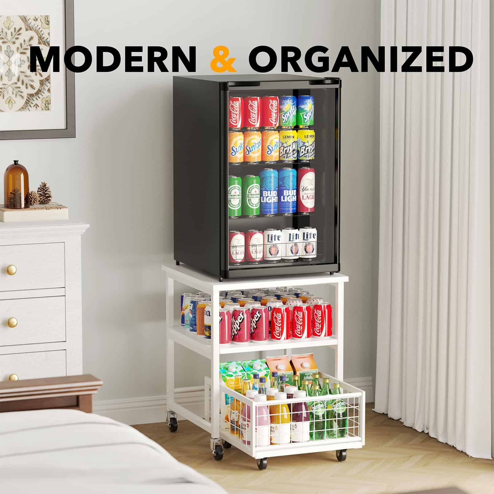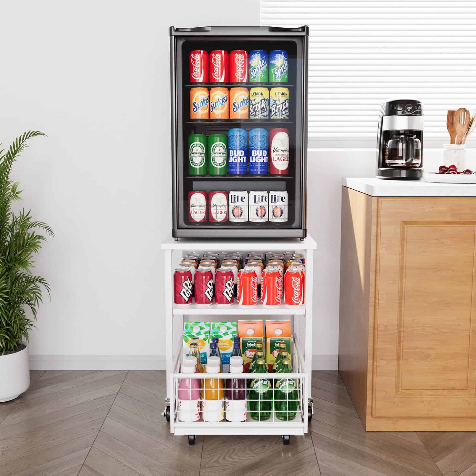 Estante para Mininevera de 3 Niveles con Almacenamiento y Ruedas, Mesa de Estante Móvil para Refrigerador de 19.7×19.7in de Alta Resistencia, Carrito Organizador para Refrigerador con Canasta de Cajón para Hogar Dormitorio Oficina (Blanco)