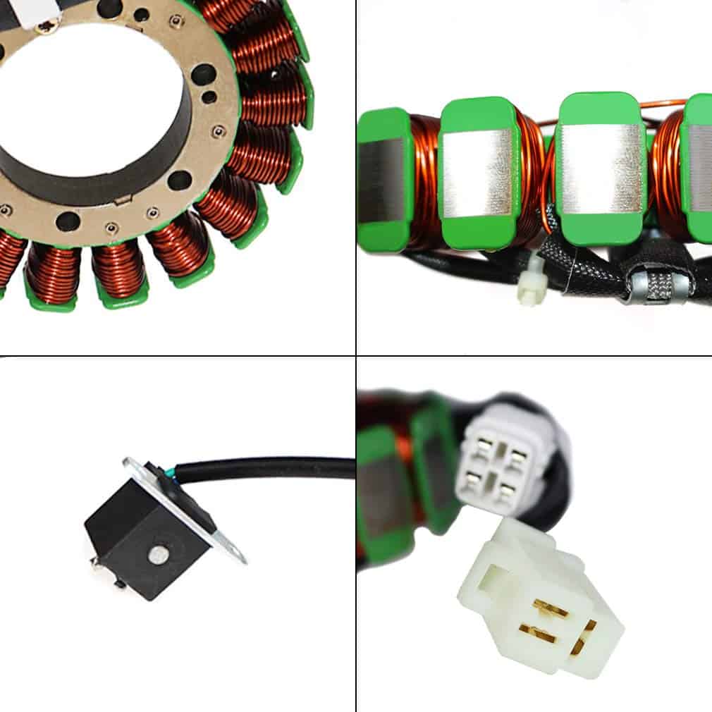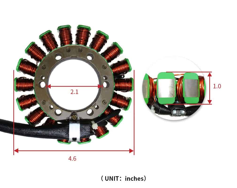 1. Reemplaza el número OE: RM23035-R00 32101-38F00. 2. AVISO: Antes de instalar tu nuevo estator, verifica la salida de corriente alterna del estator, reemplaza cualquier conector quemado o corroído en el estator y regulador/rectificador, verifica y repara cualquier cable derretido, utiliza grasa dieléctrica de alta temperatura en todos los conectores. 3. Nuestro estator puede usar un código de colores de cable diferente al original. Todos los cables están instalados en el orden correcto; por favor no cambies ninguna de las configuraciones de cableado. Este estator está diseñado como un reemplazo directo y debe utilizarse como tal. 4. Aviso para los compradores: Ofrecemos una garantía sin problemas de 6 meses. Por favor, confirma que la apariencia y el número de parte original coincidan con nuestras imágenes o los números de parte mencionados anteriormente antes de comprar.