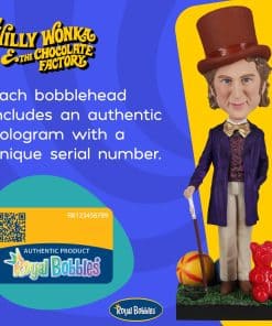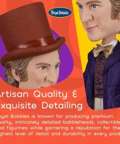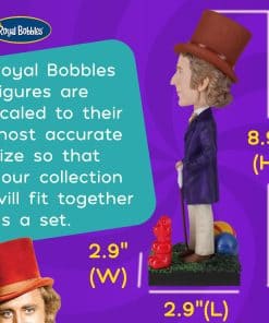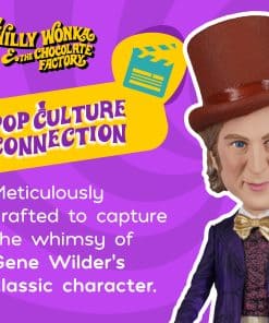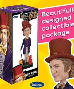 Estatua coleccionable de Willy Wonka y la Fábrica de Chocolate de Royal Bobbles. Captura la magia del icónico personaje interpretado por Gene Wilder en esta figura de bobblehead detalladamente diseñada. La figura de 8.9 pulgadas es un imprescindible para los amantes de Willy Wonka y la Fábrica de Chocolate. Hecha de resina pesada, pintada a mano y con un holograma auténtico, esta estatua de bobblehead es perfecta para los coleccionistas de películas y aficionados a la cultura pop.