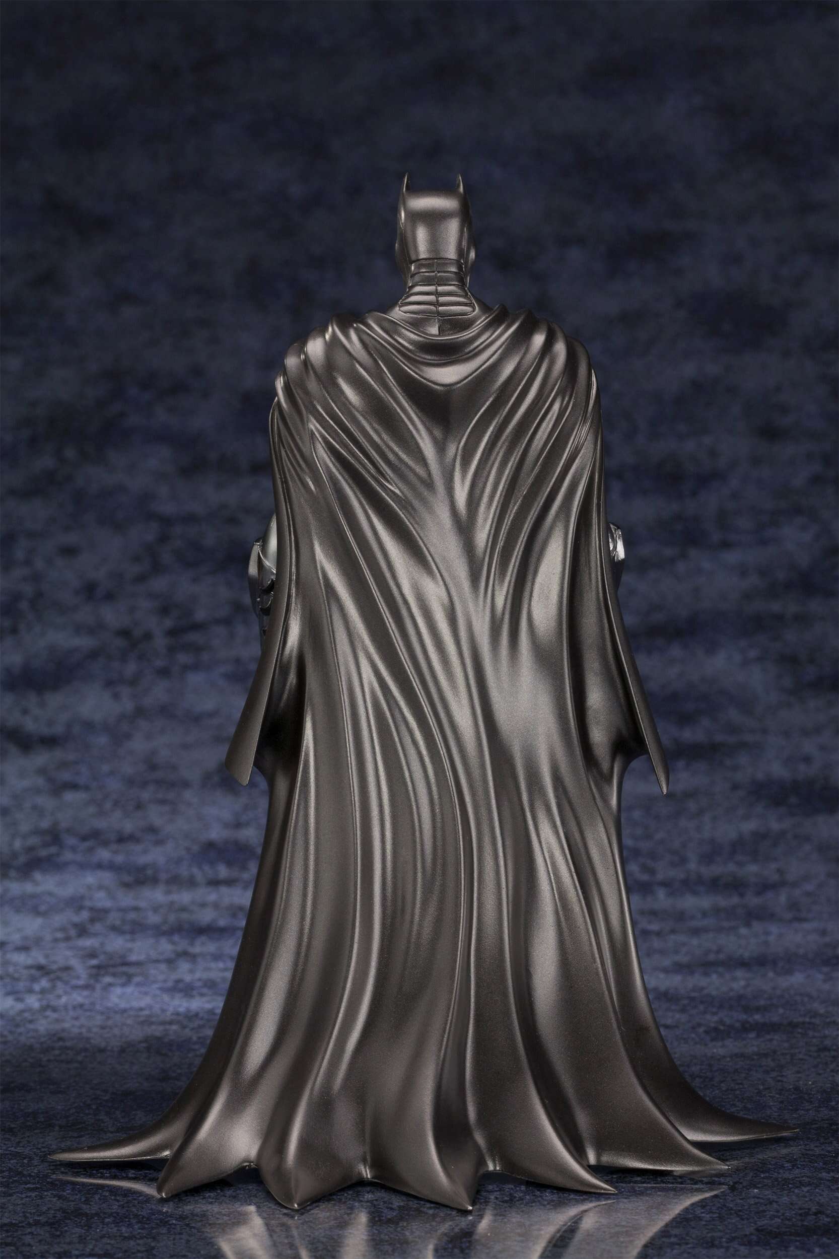 Uniéndose a sus compañeros de la Liga, Batman se encuentra listo, sin duda contemplando múltiples escenarios en su cabeza. La primera aparición de Wayne en la línea ARTFX+ captura perfectamente su look de New 52 creado por Jim Lee, con su actual traje de Bat sutilmente blindado. Los detalles en Batman son excepcionales, desde las líneas intrincadas en su traje hasta los muchos pequeños bolsillos en su cinturón de utilidades, guanteletes con cuchillas malvadas, capa larga que fluye y más. El enfoque único de Kotobukiya en este Batman presenta un brillo metálico en su traje gris que se ve fantástico con el negro más oscuro de la capa, capucha, emblema del pecho, guantes y botas, mientras que, por supuesto, el cinturón es su tradicional color amarillo brillante.