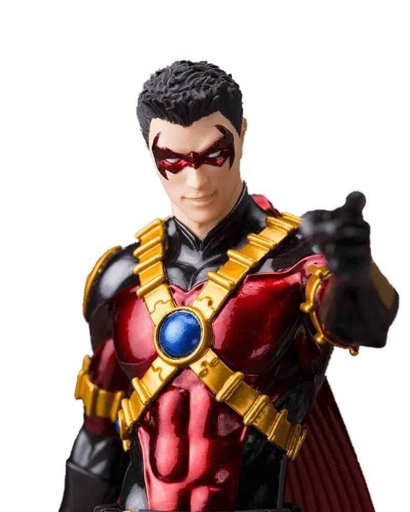 ¡De Kotobukiya! ¡Importación japonesa de Kotobukiya! ¡La última Estatua DC Comics ARTFX+ de Kotobukiya agrega otro miembro de la «Familia Batman» de personajes de las páginas del New 52, Red Robin! El tercer asistente de Batman después de Dick Grayson y Jason Todd, Tim Drake es famoso por sus habilidades para detectar; de hecho, descubrió la identidad secreta del Caballero Oscuro por sí solo. Pero como los que lo precedieron, Drake finalmente emergió de la sombra del Murciélago para ser su propio héroe y así se convirtió en Red Robin, líder de los Jóvenes Titanes. Ese fue su papel en la era New 52 de DC Comics, ¡y ahora esa encarnación se une a la creciente línea de Estatuas ARTFX+! Brillante y seguro, Red Robin señala a los villanos como diciendo «¡Conozco todos tus secretos!» El joven héroe está vestido con su distintivo traje visto por primera vez en el New 52, un traje negro complejo con paneles de armadura roja incorporados y botas reforzadas. Encima de eso lleva un cinturón de utilidad negro lleno de bolsas, guantes con acentos amarillos, una máscara de antifaz roja, y un arnés de pecho amarillo y azul que se conecta a su mochila y capa roja segmentada que le permite volar. El atuendo de Tim Drake tiene un gran brillo metálico y brillante que realmente da vida a su equipo de alta tecnología, y hay un montón de detalles geniales desde su musculatura definida hasta el logo de los Jóvenes Titanes en su hombro, y mucho más. ¡Y a pesar de la sonrisa insolente en su rostro, sabes que Red Robin va en serio mientras sostiene su fiel vara lista! Esculpido por Naoya Muto, Red Robin mide un poco más de 7″ de alto (escala 1/10) y como todas las estatuas ARTFX+ tiene imanes en sus pies para una estabilidad adicional en su base de exhibición incluida. ¡El héroe adolescente de alta volada luce genial por sí solo y es el compañero perfecto para las otras estatuas ARTFX+ de la Familia Batman como Red Hood, Nightwing, Damian Wayne, y por supuesto el Caballero Oscuro mismo!