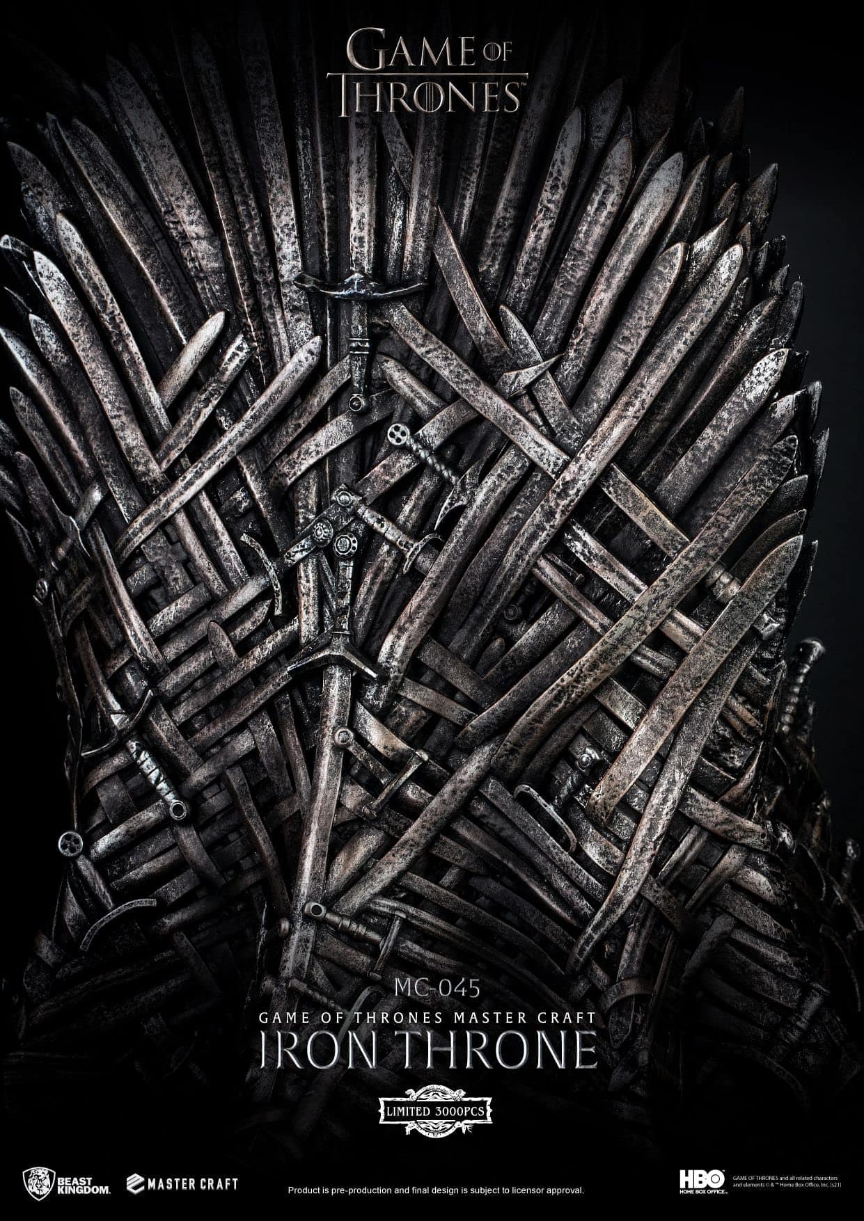 Beast Kingdom asume el desafío de dar vida a un símbolo icónico y llamativo con el lanzamiento del Trono de Hierro MC-045 de Game of Thrones bajo la gama Master Craft de obras maestras esculpidas y pintadas a mano. El nivel de detalle en exhibición para los picos, las púas y las espadas únicas es excepcional. El uso de efectos de envejecimiento en el proceso de pintura permite que la precisión en el óxido brille realmente. Este Trono de Hierro Master Craft está limitado a 3,000 piezas en todo el mundo. ¡Asegúrate de asegurar el tuyo antes de que se agoten!