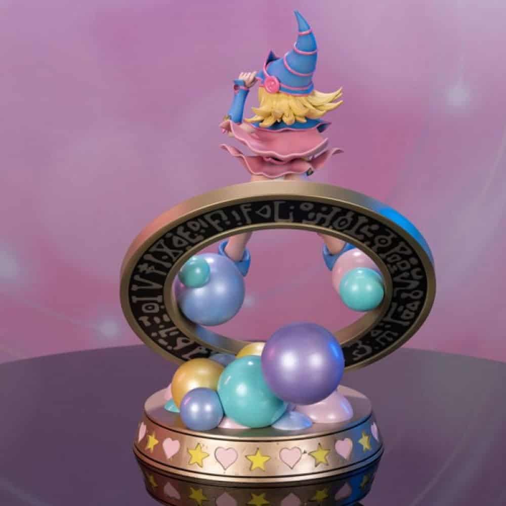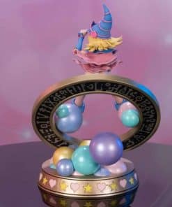 Dark Magician Girl ayudó a Yugi a derrotar a muchos enemigos, desde Battle City hasta el Duel Festival. Para esta estatua, Dark Magician Girl está alta en el aire y con su varita en frente, lista para entrar en batalla! Detrás de ella está el Sello del Mago, y coloridos orbes mágicos brotan de la base.