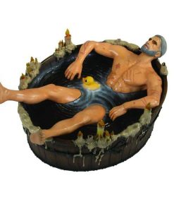 Originalmente una escena del juego, convertida en meme de internet, que se convirtió en una broma del Día de los Inocentes de CD Projekt Red, la demanda de que esto se hiciera realidad por parte de los fanáticos de Witcher fue demasiado grande para soportarla. Dark Horse se enorgullece de traerte esta estatuilla de poliresina maravillosamente detallada y pintada a mano que presenta a Geralt de Rivia relajándose y curándose de sus peligrosos viajes en una bañera iluminada por velas, ¡completa con su patito de goma!