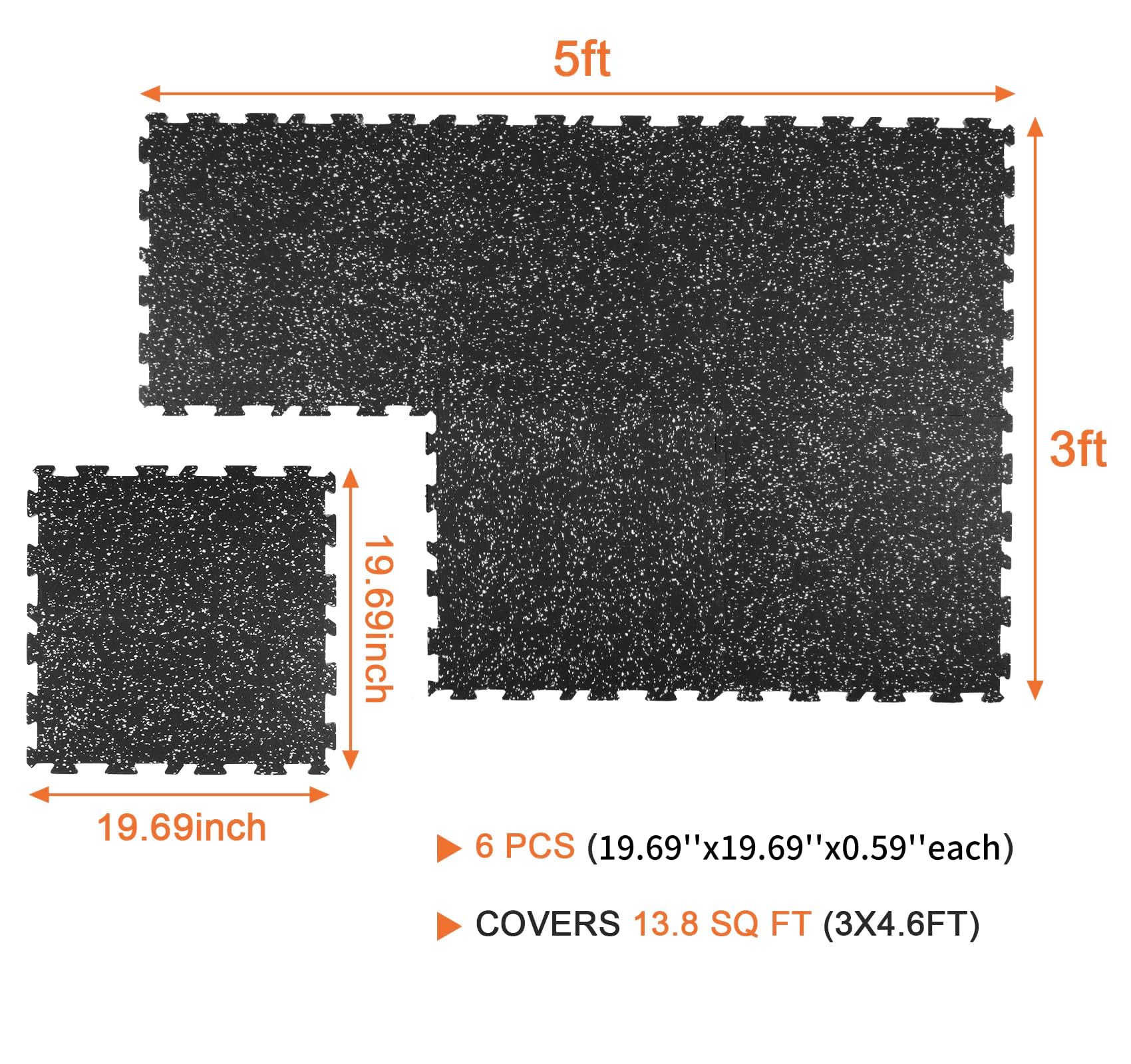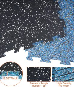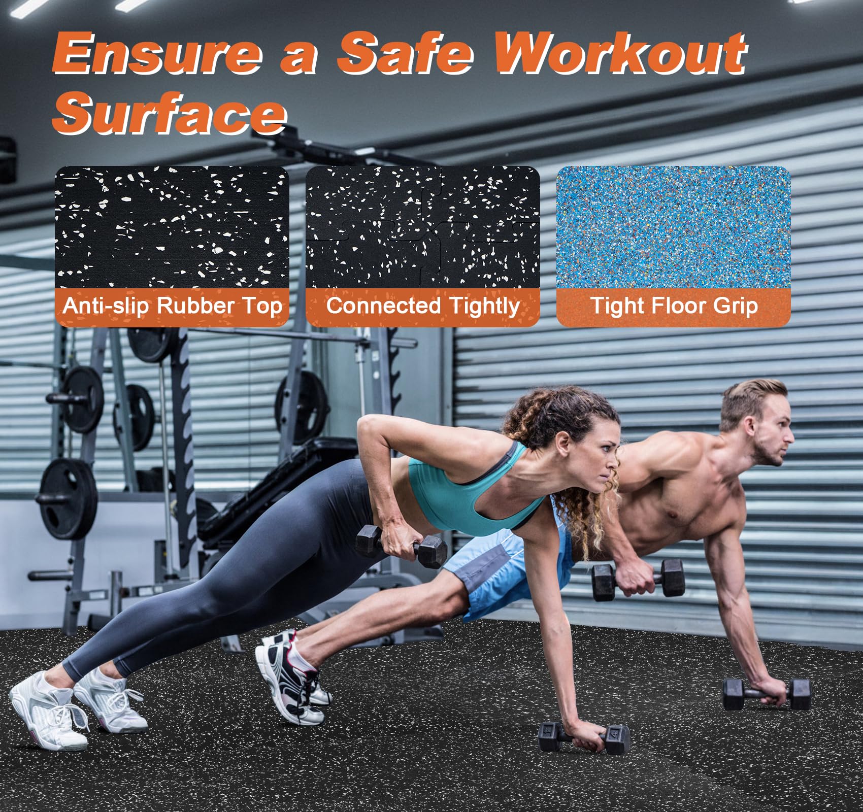 Nuestras esteras de gimnasio interbloqueables para gimnasio en casa pueden absorber efectivamente el ruido, por lo que puedes concentrarte en tu entrenamiento sin molestar a tu familia o vecinos, permitiéndote sumergirte por completo en tu entrenamiento. Cada una tiene un grosor de 0.59 pulgadas, tamaño de 19.69″ x 19.69″, cubre 13.8 pies cuadrados, un total de 6 piezas. Puedes colocar esta estera en cualquier lugar que la necesites. Reduce eficazmente la fricción y el impacto causado por el equipo de fitness para que no tengas que preocuparte por arañar tu piso. Las esteras interbloqueables pueden moverse o extenderse fácilmente según tus necesidades de espacio, lo que las hace ideales para su uso en garajes, gimnasios, salas de fitness en casa o salas de juegos.