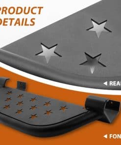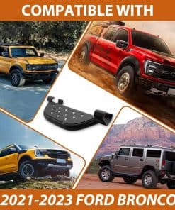 Los estribos para Ford Bronco 2021-2023 son el complemento perfecto para tu vehículo, ofreciendo durabilidad, diseño profesional y facilidad de acceso. Estos estribos están fabricados con acero de tungsteno de alta calidad, que garantiza resistencia a la corrosión, oxidación y desgaste. Gracias a la soldadura TIG, los estribos son sólidos y confiables para soportar las condiciones de conducción más exigentes. El recubrimiento en polvo negro de zinc evita el deslizamiento y permanece intacto con el tiempo. Además, estos estribos se ajustan perfectamente a las rocas OEM para Ford Bronco de 4 puertas, proporcionando estabilidad y facilidad de acceso para pasajeros de todas las edades. Con capacidad de carga de hasta 300 libras, estos estribos también ofrecen una utilidad excepcional al permitir una distancia adecuada al suelo para la conducción todoterreno, proteger la pintura del umbral de la puerta y facilitar la carga y descarga de la parrilla del techo. Para una mayor satisfacción del cliente, se incluyen varias placas de paso, tornillos de calidad y un llavero personalizado de forma gratuita. Con los estribos para Ford Bronco, disfruta de un producto de alta calidad que mejora la funcionalidad y protege tu vehículo.