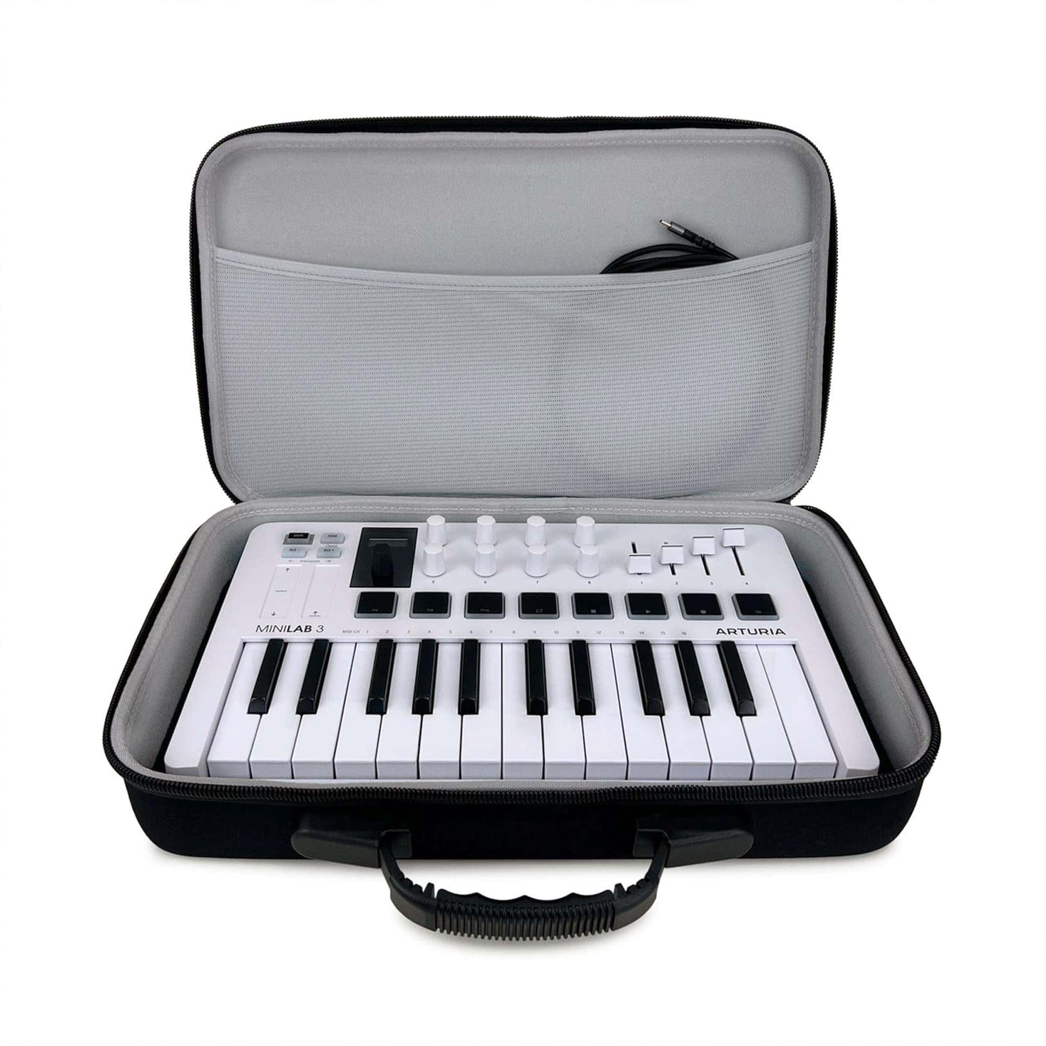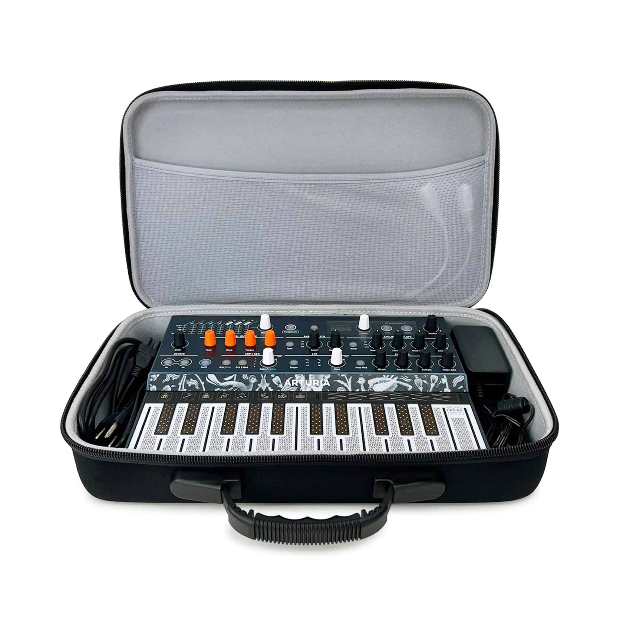 Un estuche duradero y fácil de usar para tu teclado Arturia. El estuche PULSE de Analog Cases es el primero y único estuche moldeado a medida con exactitud para los teclados de 25 teclas de Arturia. A diferencia de las bolsas de nylon tradicionales para teclados, los estuches PULSE están hechos de EVA rígido que mantiene su forma y proporciona una excelente protección, y cuentan con un asa de goma moldeada que es resistente y cómoda. Este estuche también incluye un compartimento de malla de nylon para sostener tus cables. Con solo 1 libra de peso, este estuche es muy fácil de transportar. Tiene un aspecto fantástico, está construido para durar y también se puede utilizar para llevar una amplia variedad de dispositivos más pequeños.