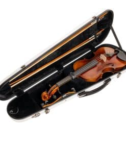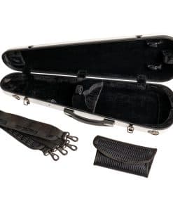 ESPECIFICACIONES: Tipo de Producto: Estuche de Violín Tamaño: Tamaño Completo 4/4 Colores: Rojo / Blanco / Negro / Azul Material Exterior: Fibra de Vidrio Material Interior: Forro de terciopelo negro Peso: 4.15 lb.