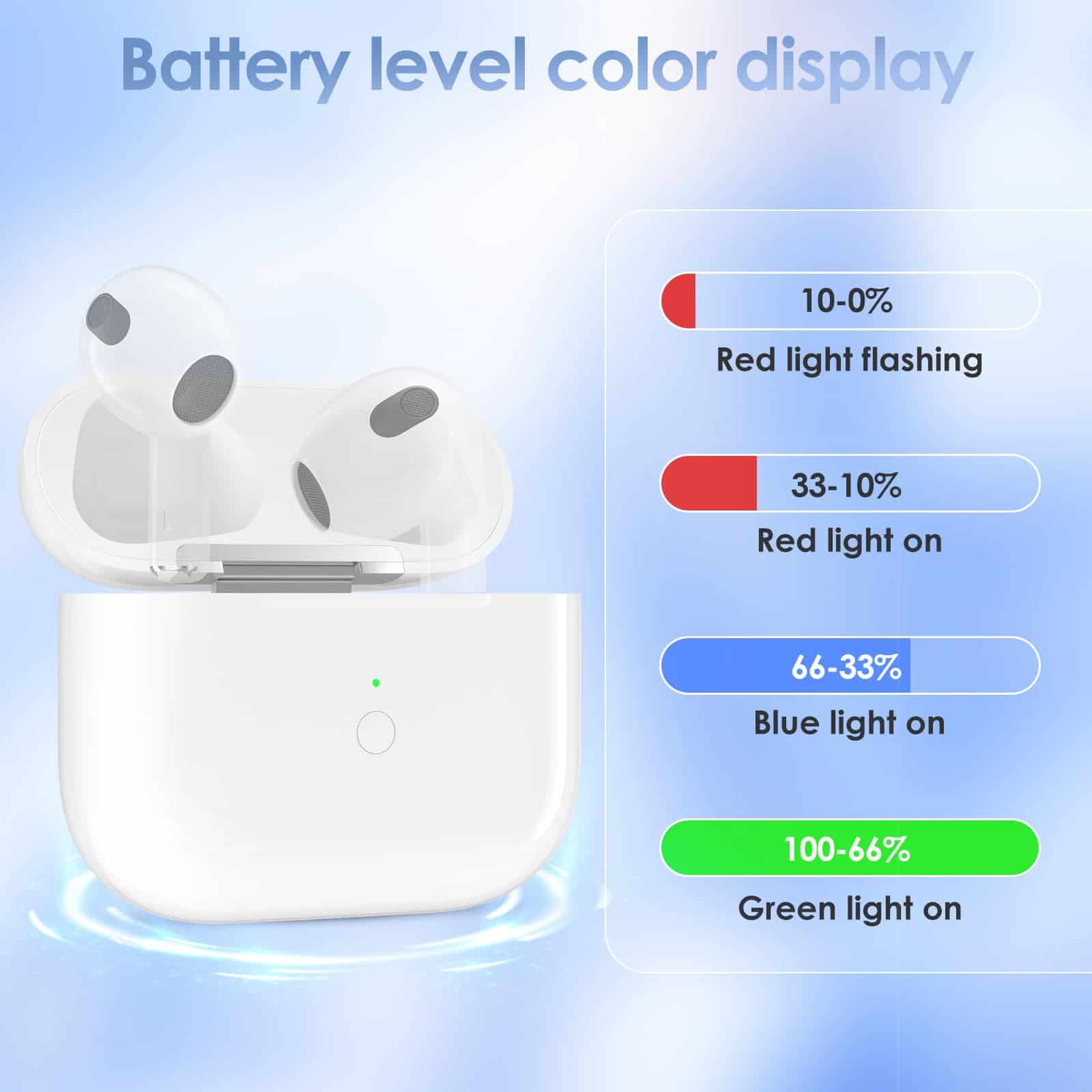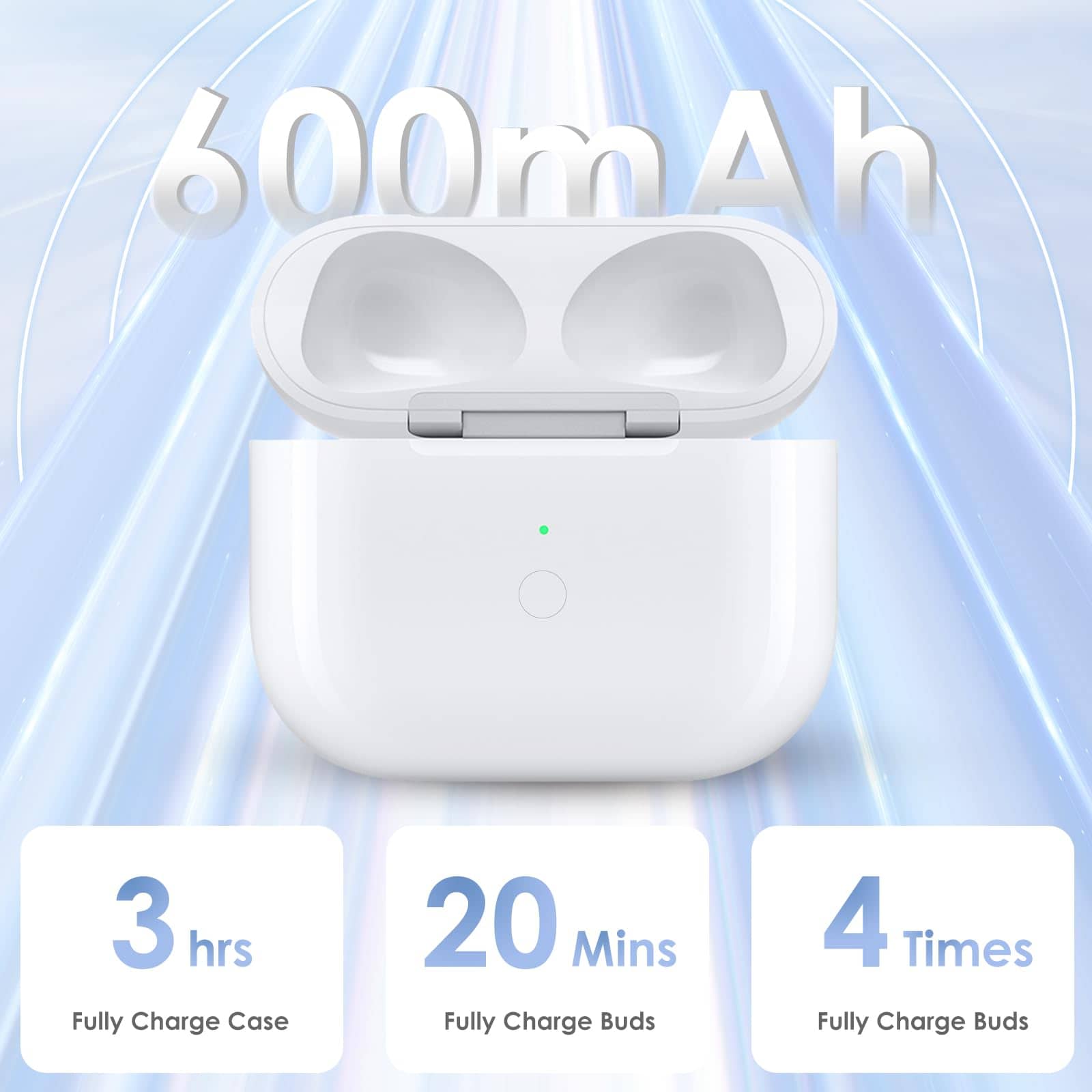 4. Capacidad de batería La estación de carga inalámbrica para los auriculares de la 3ra generación de Air-Pods tiene una batería incorporada de 660mAh que puede cargar los auriculares 3 veces. El tiempo de carga de la batería es de 3 horas; el tiempo de carga de los auriculares Air-Pods Pro 1ra generación es de solo 20 minutos.