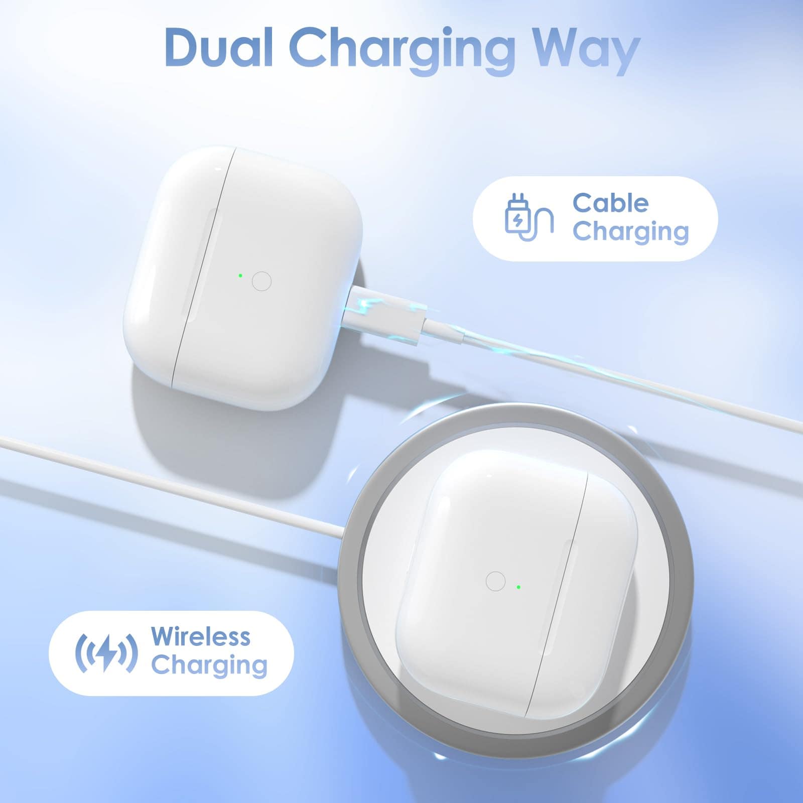3. Doble forma de carga El estuche de carga inalámbrica bluetooth admite tanto la carga inalámbrica como la cargada con cable, ofreciendo una experiencia de carga flexible y conveniente, ya sea que prefiera los métodos de carga sin cables o tradicionales.