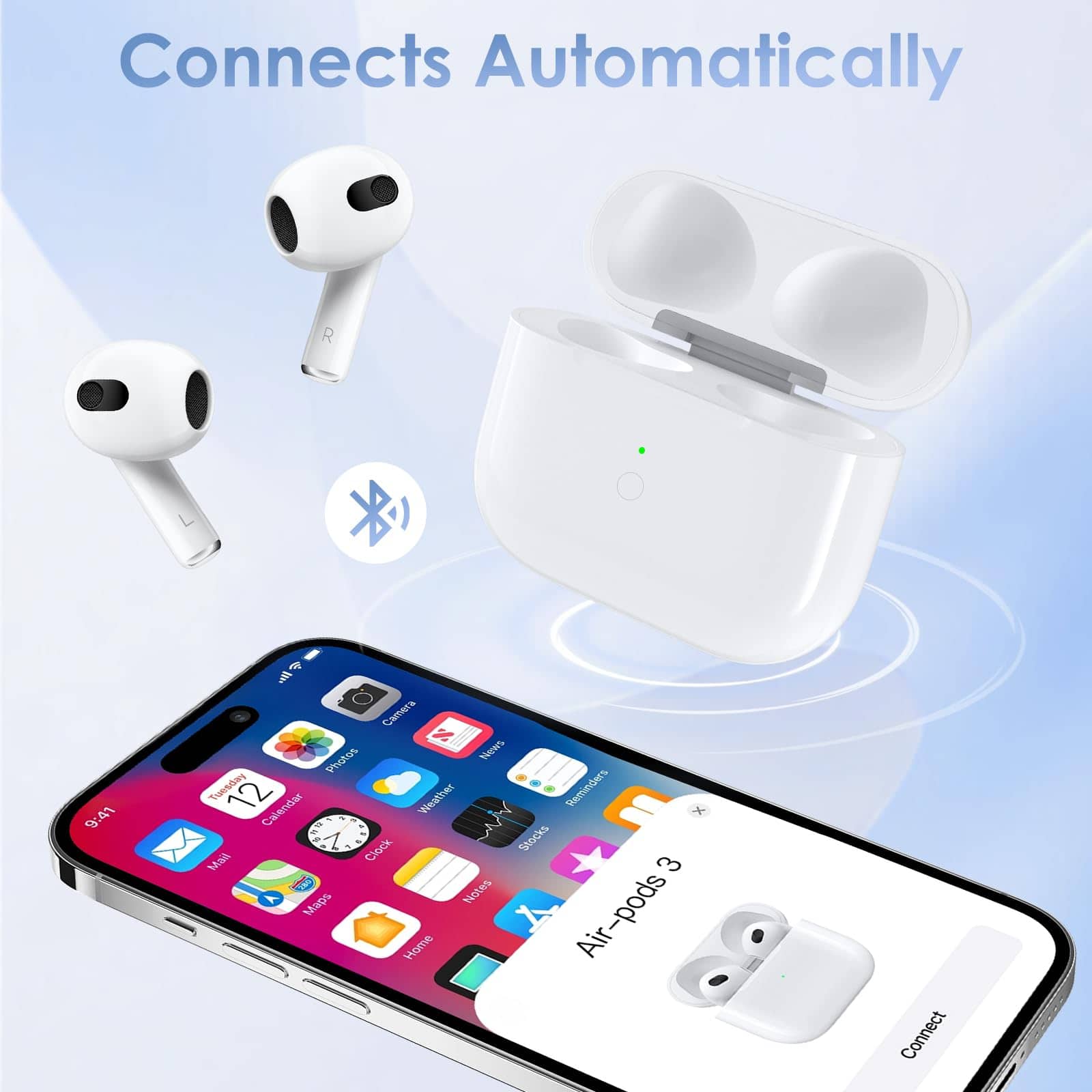 5. Conexión Bluetooth Simplemente empareje su dispositivo con los auriculares la primera vez que los use, y se conectarán automáticamente cuando abra el estuche posteriormente. Nota: Solo para Air-Pods de 3ra generación, no para las generaciones de Air-Pods 1, 2 y Air-Pods Pro1, 2.