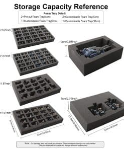 El estuche de almacenamiento de miniaturas Jucoci 04 es ideal para transportar y proteger tus miniaturas de forma segura. Con sus dimensiones de 17.5×13.5×7.5 pulgadas y su peso ligero, podrás llevarlo contigo fácilmente. Incluye varias bandejas de espuma pre-cortadas y personalizables que te permiten organizar y almacenar tus miniaturas de manera eficiente. Las bandejas de espuma de diferentes grosores se adaptan a miniaturas de distintos tamaños, lo que lo hace versátil y práctico para coleccionistas y aficionados a los juegos de miniaturas.