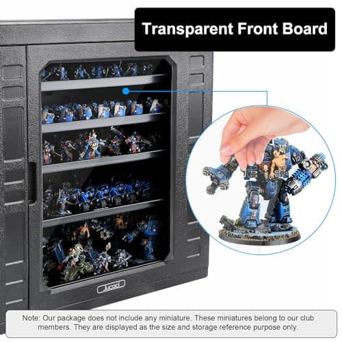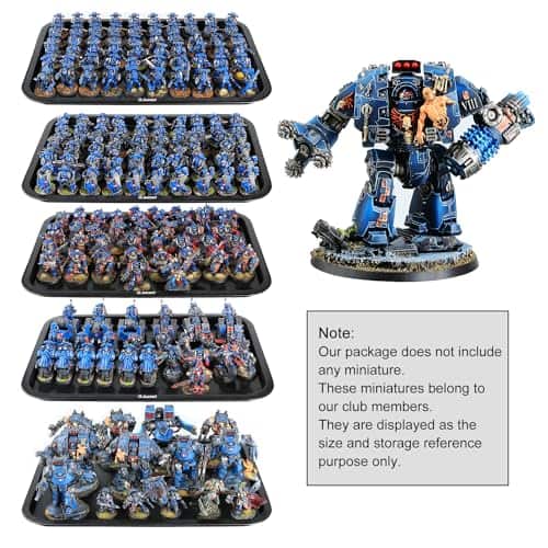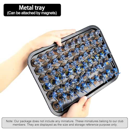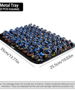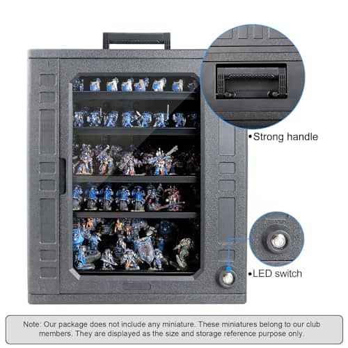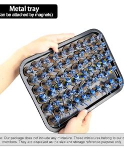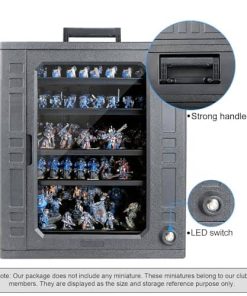Estuche de Almacenamiento de Miniaturas Jucoci Miniaturas Estuche de Transporte (Tamaño grande con luz) – Este estuche de transporte de miniaturas de Jucoci es perfecto para guardar y transportar tus miniaturas de forma segura. Incluye 5 bandejas de metal que se conectan mediante imanes, lo que mantiene tus miniaturas estables durante el transporte. La altura de las bandejas es ajustable para adaptarse a diferentes tamaños de miniaturas. El estuche está hecho de plástico resistente y requiere montaje, pero el vendedor puede proporcionar ayuda si es necesario. Además, este estuche viene con una actualización de luz LED que ilumina tus miniaturas en entornos oscuros, haciéndolas destacar. Por favor ten en cuenta que las miniaturas que se muestran en las imágenes del producto son solo para referencia y no están incluidas en la compra del estuche.