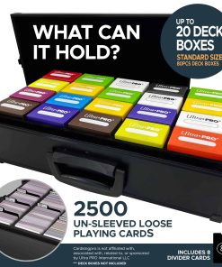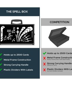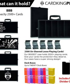 ¡Lo pediste y lo entregamos! ¡Nuestro estuche de almacenamiento más grande hasta ahora! Si quieres almacenar tarjetas sueltas, nuestro nuevo estuche puede contener hasta 2500 tarjetas sin funda. ¡Mantén todas tus tarjetas seguras en un solo lugar con este elegante estuche de metal que es súper resistente y no se desarmará!