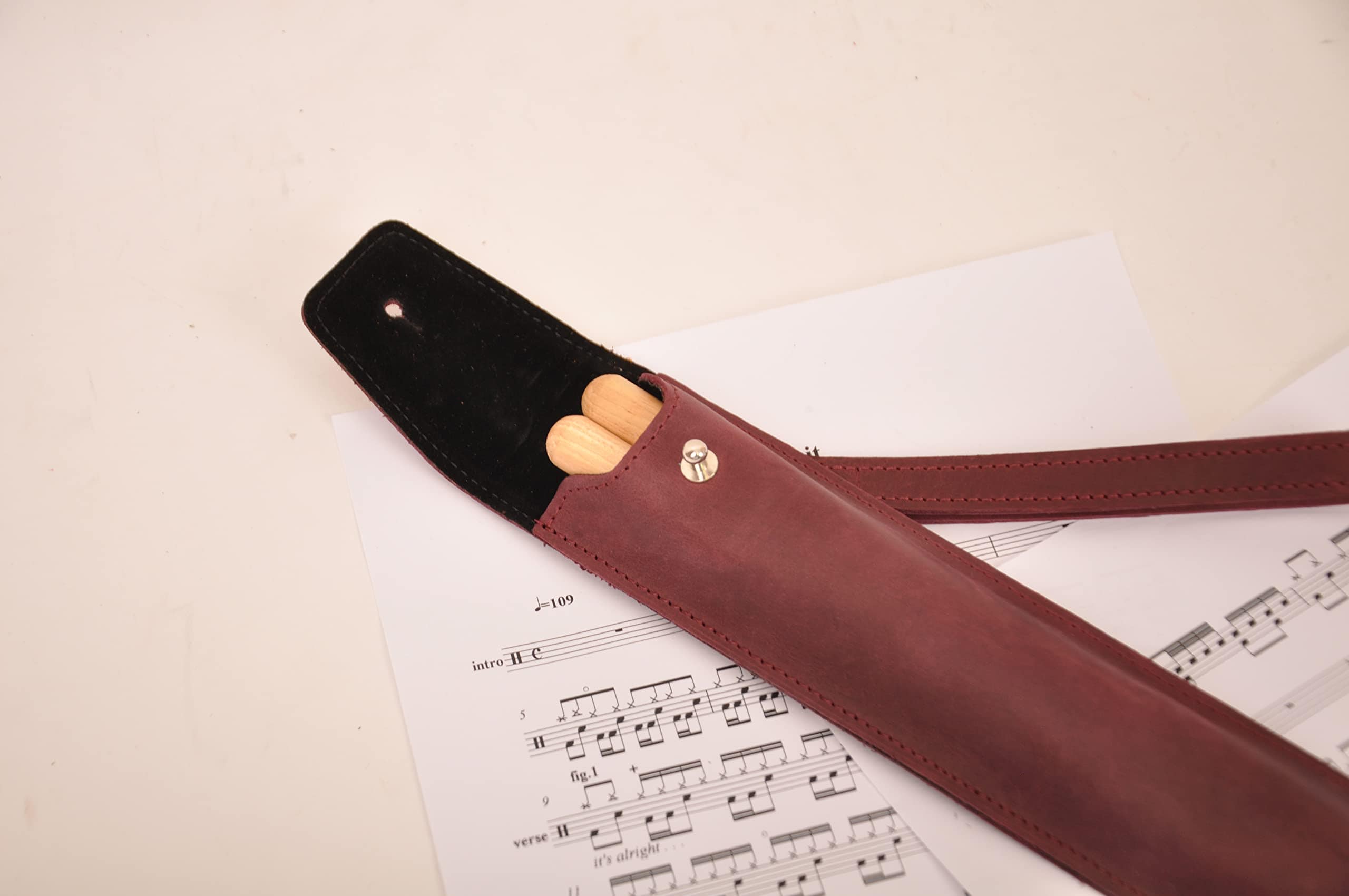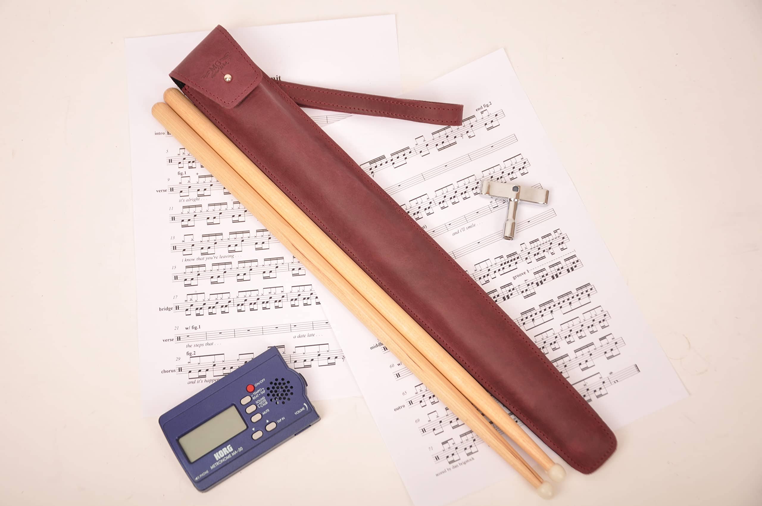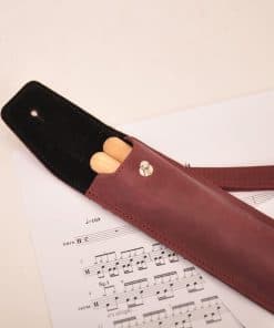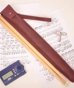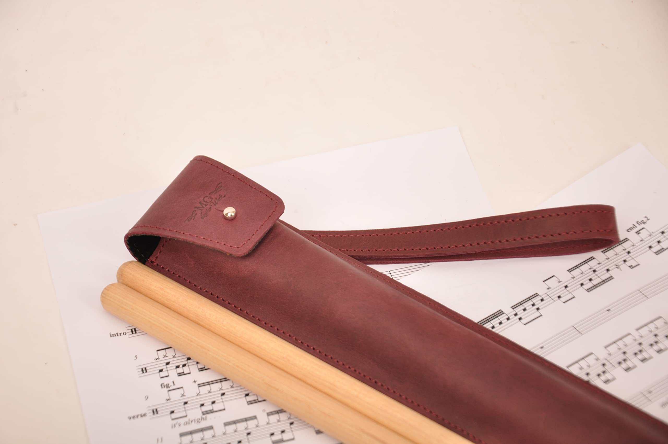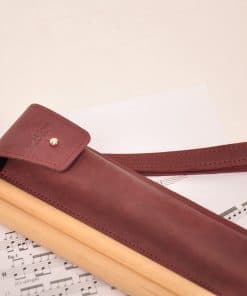 El estuche de baquetas de cuero genuino fabricado por MG Leather Work combina una larga vida útil, una textura agradable y un diseño atractivo. Está diseñado para contener dos baquetas y proporcionarles una protección total. El cómodo cierre de botón permite un rápido acceso a los accesorios. El cuero genuino agradable al tacto se ve elegante y único, y conserva sus propiedades incluso siendo utilizado a diario. Gracias a la variedad de colores, puedes elegir el soporte de baquetas de batería de color azul oscuro, marrón, verde, rojo y otros colores. Este bolso funcional y práctico es un excelente regalo para bateristas de cualquier nivel de habilidad, tanto para profesionales como para músicos principiantes. Si quieres preparar un regalo útil para tu amigo que toca la batería, ¡elige este!