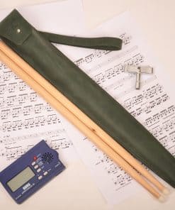 El estuche de baquetas de cuero genuino, fabricado por MG Leather Work, combina una larga vida útil, una textura agradable y un diseño atractivo. Está diseñado para sostener dos baquetas y proporcionarles completa protección. El cómodo cierre de botón permite un rápido acceso a los accesorios. El cuero genuino, agradable al tacto, se ve elegante y único, y conserva sus propiedades incluso siendo utilizado a diario. Gracias a la variedad de colores, puedes elegir el sostenedor de baquetas en azul oscuro, marrón, verde, rojo y otros colores. Este bolso tan funcional y práctico es un excelente regalo para bateristas de cualquier nivel de habilidad, tanto para profesionales como para músicos aficionados. Si deseas preparar un regalo útil para tu amigo que toca la batería, ¡elige este!